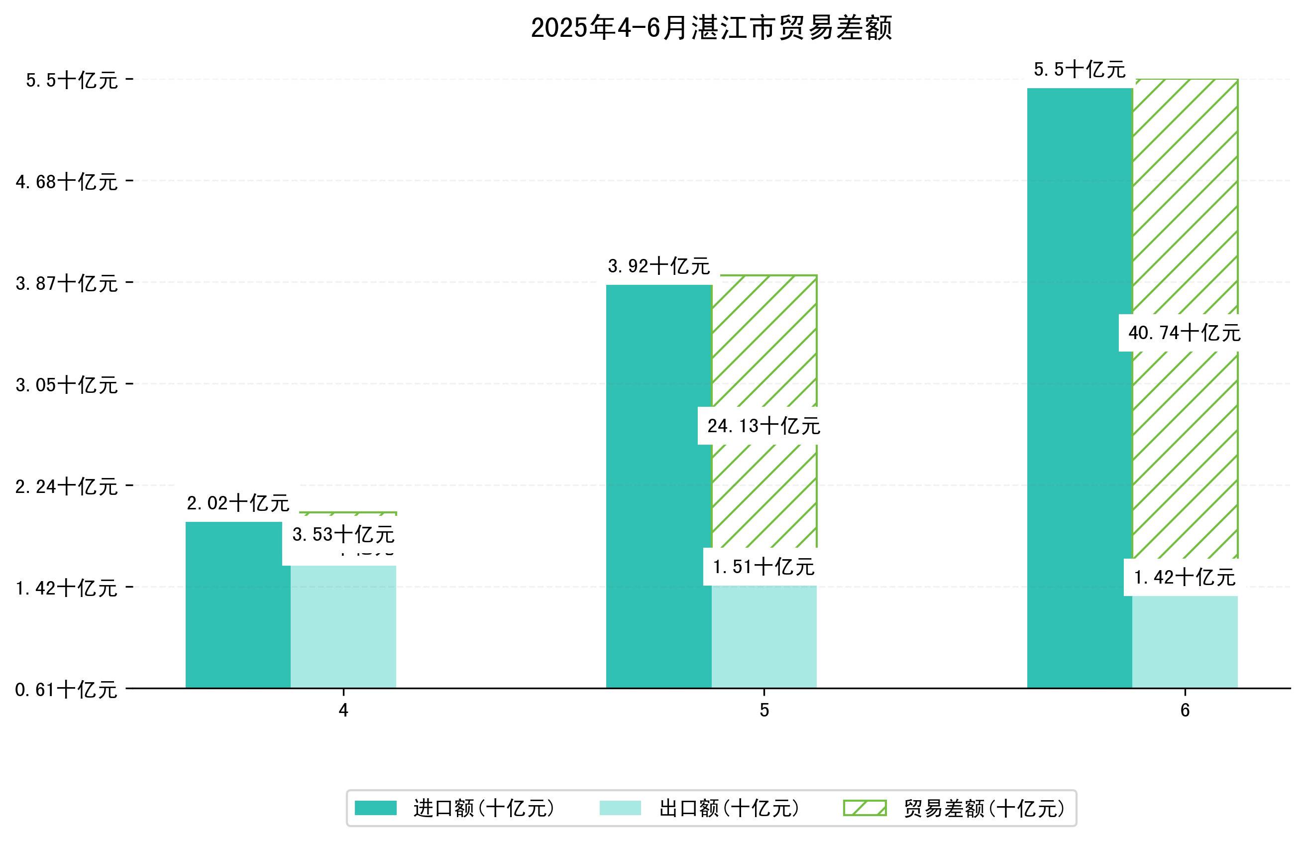 2025年6月湛江市进出口总额及进出口差额统计分析