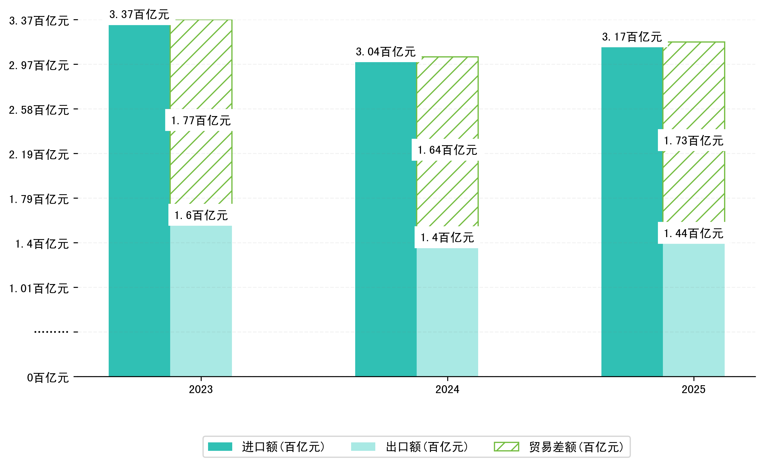 以人民币计,2025年1-9月湛江市贸易差额为173,0225,9381万元(贸易逆差),相比上年同期减少了9,2682,5122万元,同比减少5.66%。
