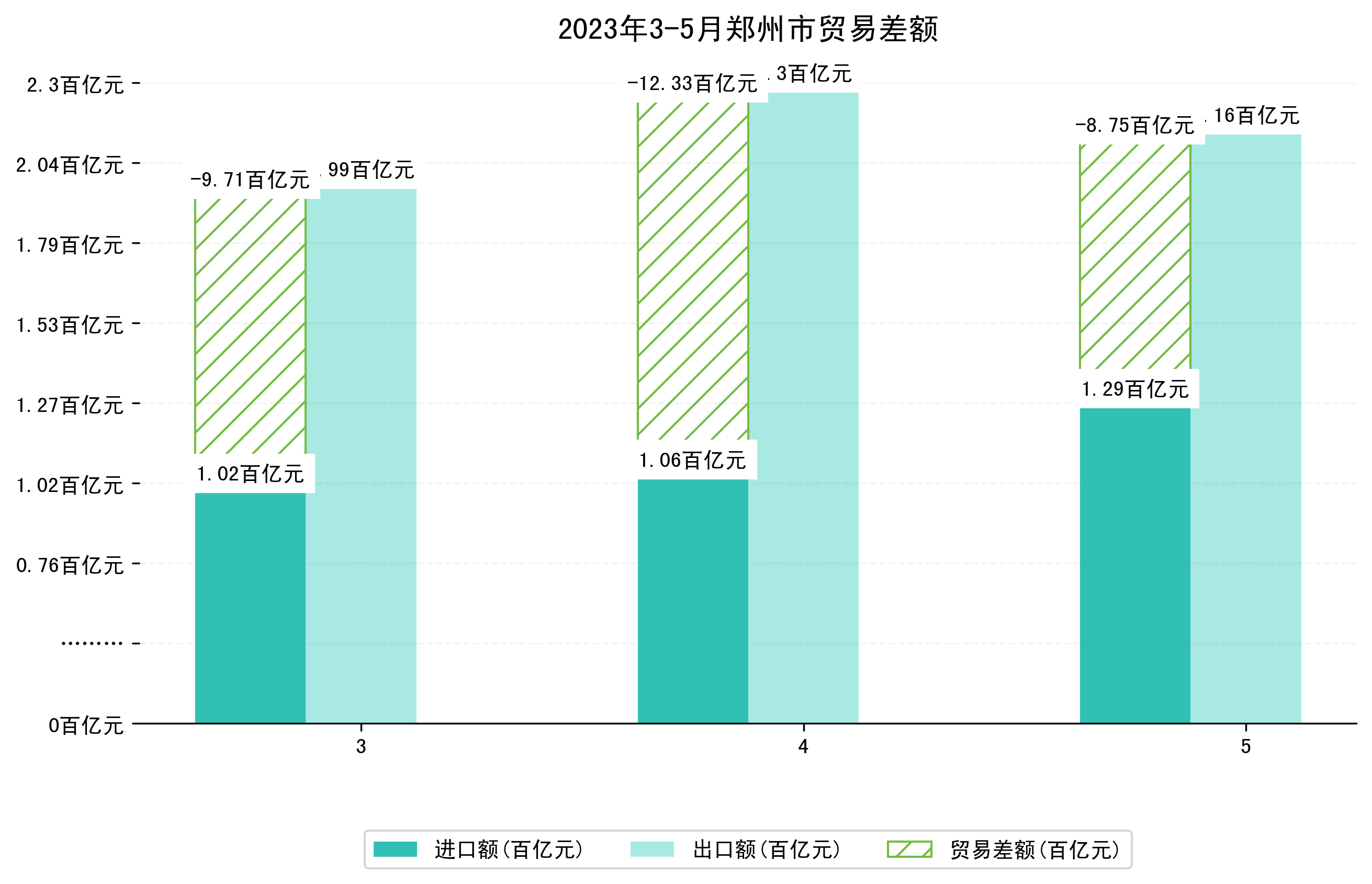 一、2023年5月郑州市单月出口总额及进出口差额统计分析