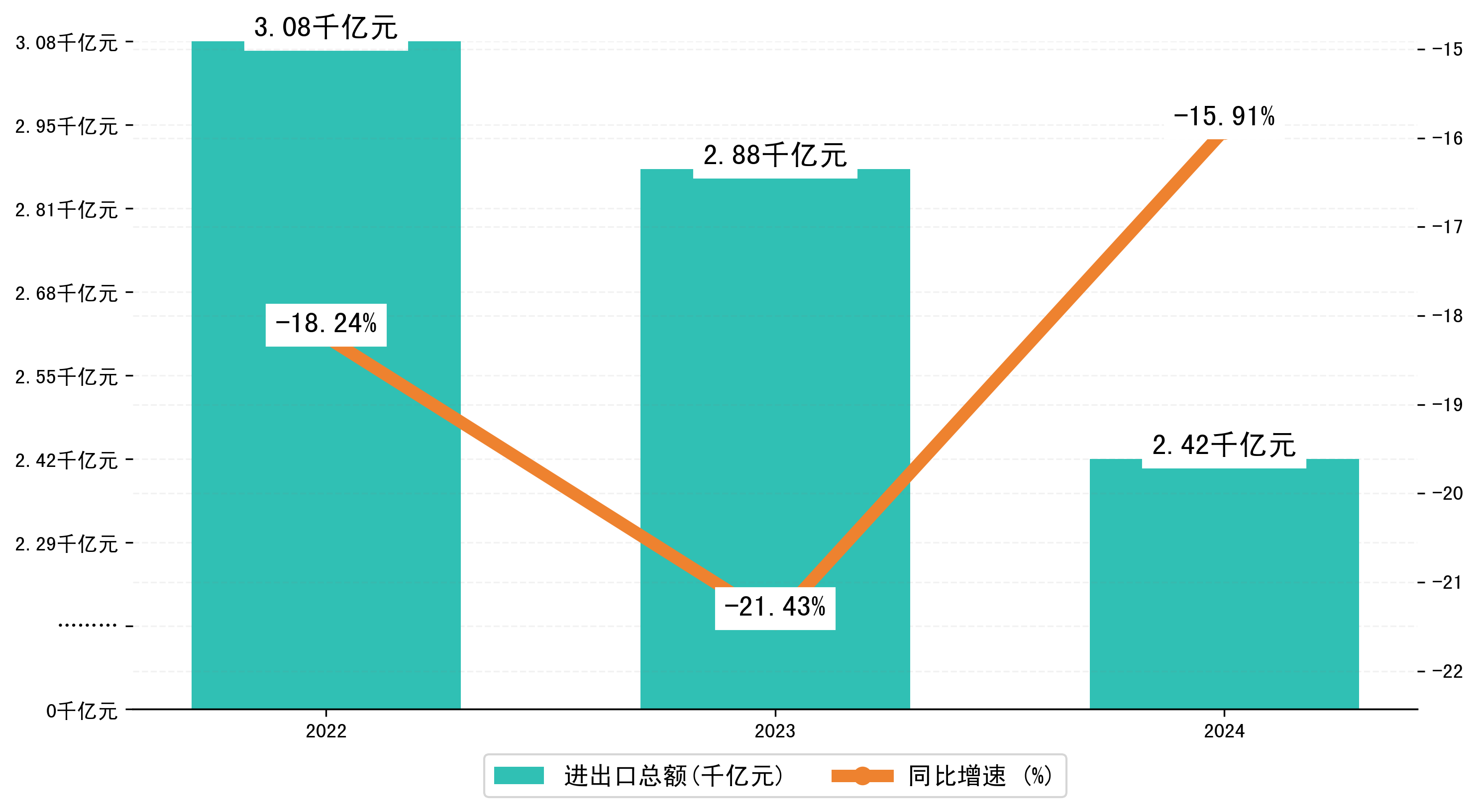 以人民币计,2024年1-7月郑州市进出口总额为2417,9969.4294万元,相比上年同期减少了457,4470.0418万元,同比减少了-16.00%。