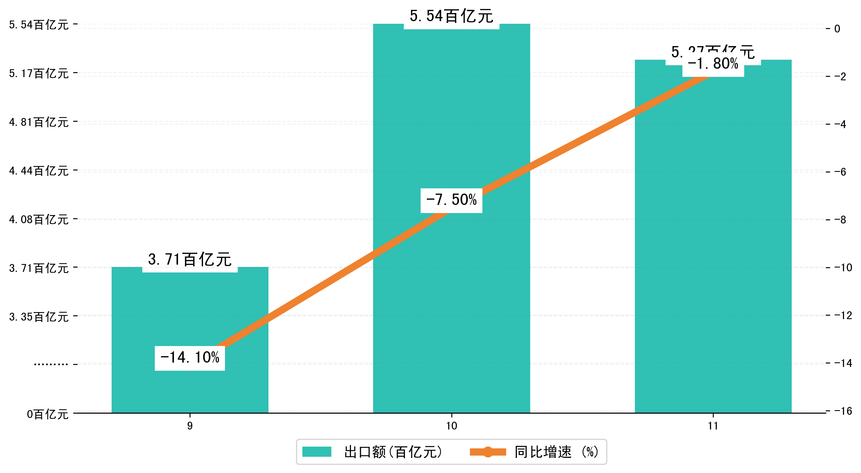 一、2024年11月郑州市单月出口总额及进出口差额统计分析
