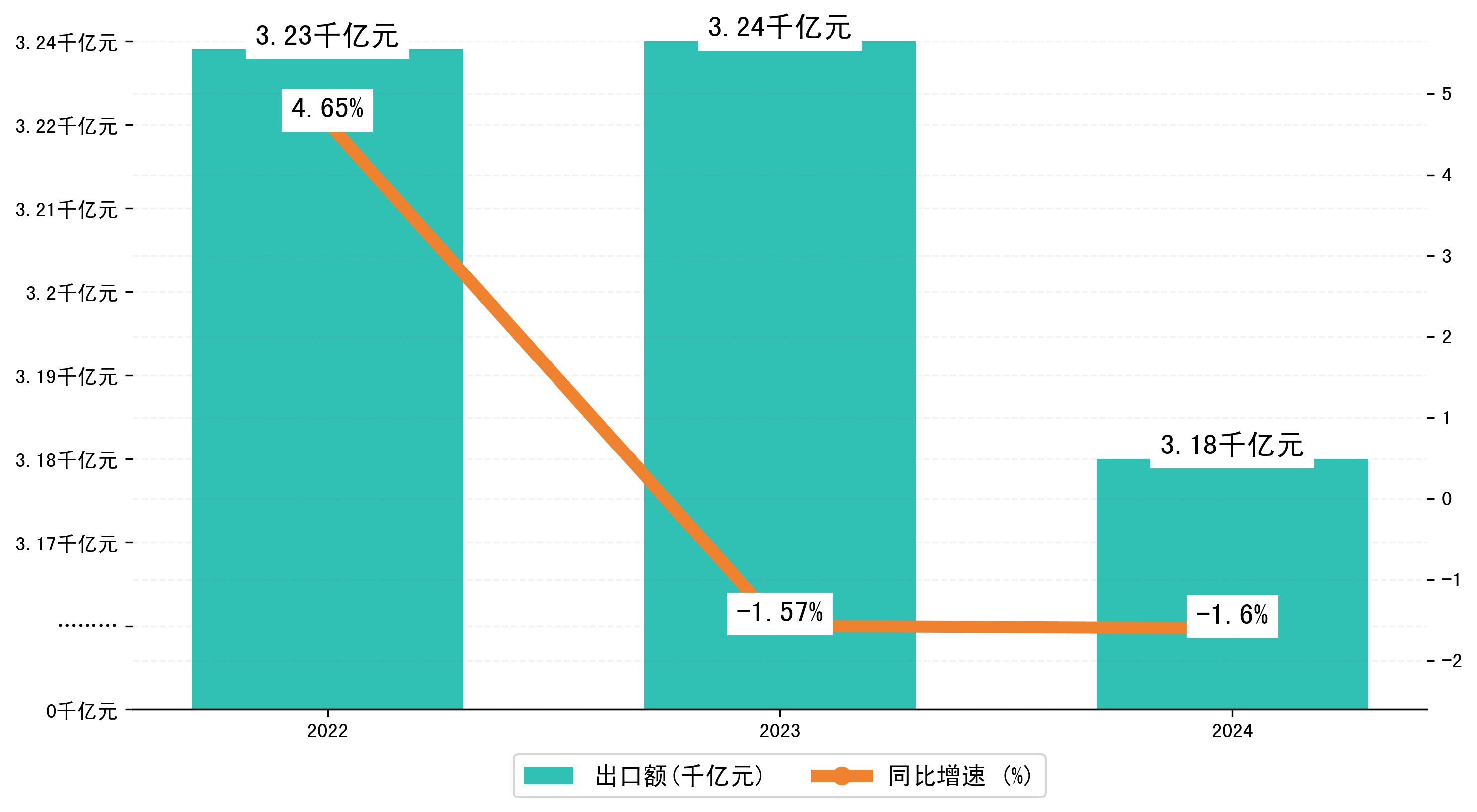 以人民币计,2024年1-11月郑州市出口额为3183,3826.4252万元,相比上年同期减少了51,8109.6731万元,同比减少了-1.80%。