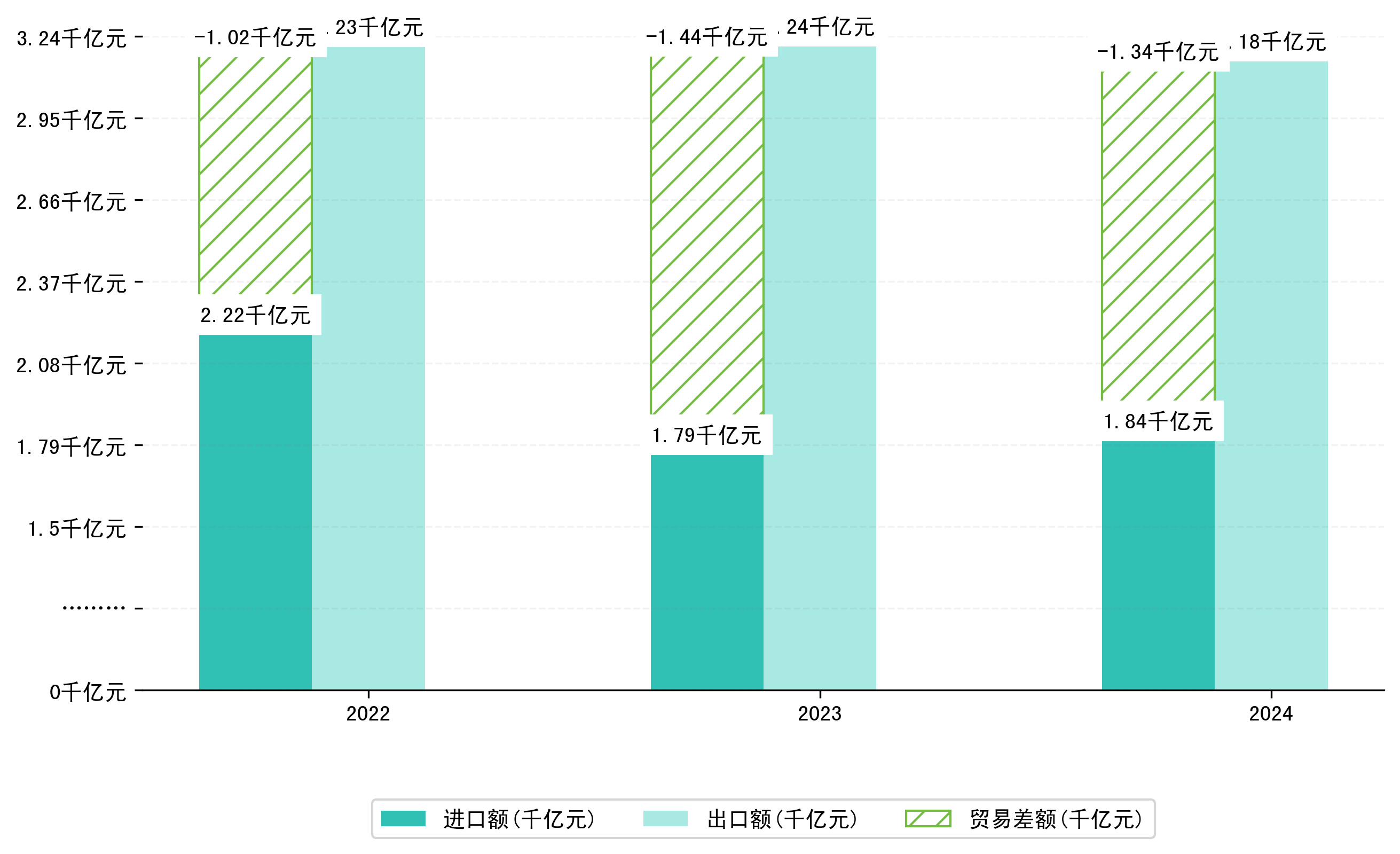 以人民币计,2024年1-11月郑州市贸易差额为1342,7288,3849万元(贸易顺差),相比上年同期减少了100,4681,2878万元,同比减少-6.96%。