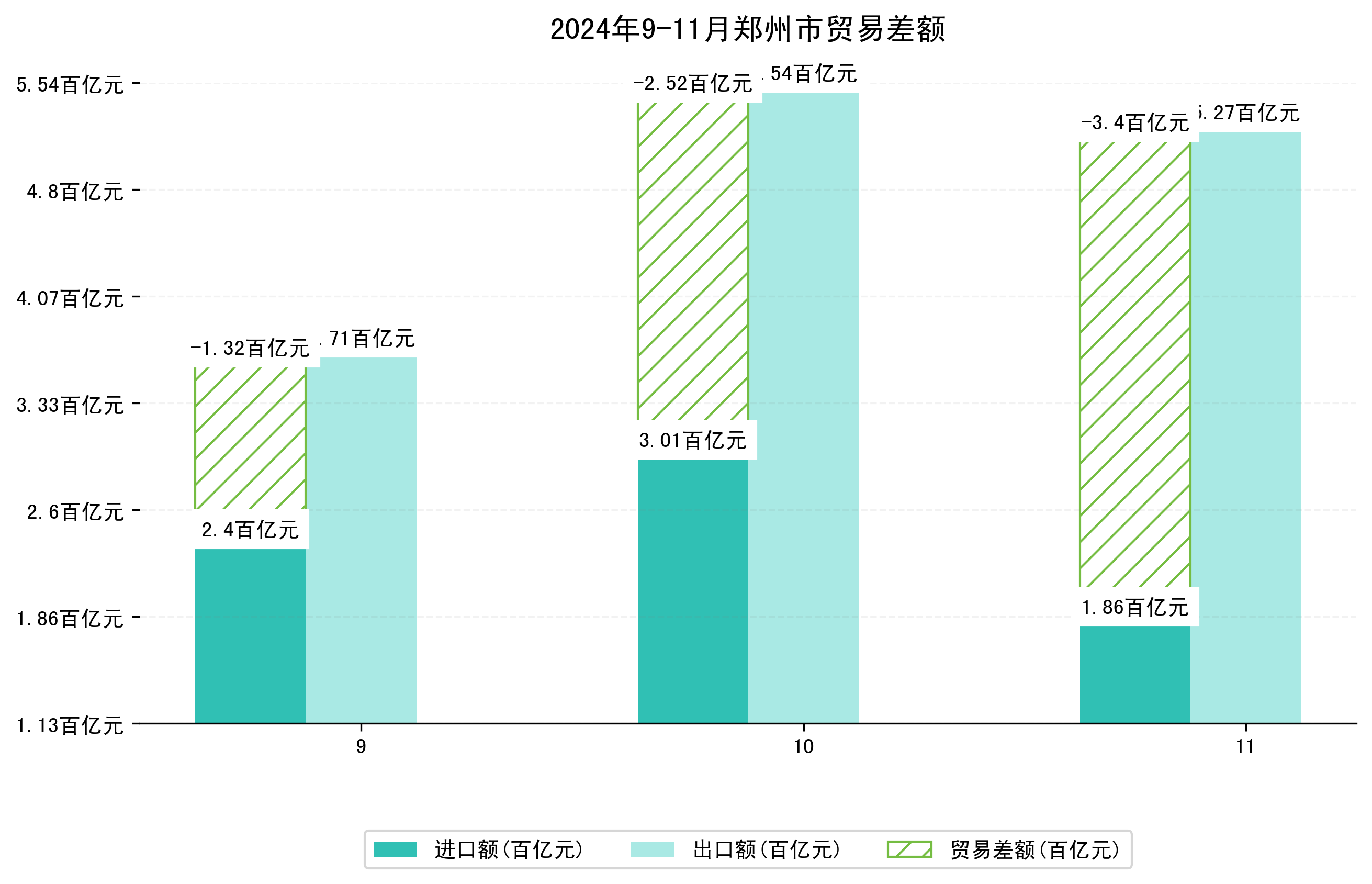 2024年11月郑州市进出口总额及进出口差额统计分析