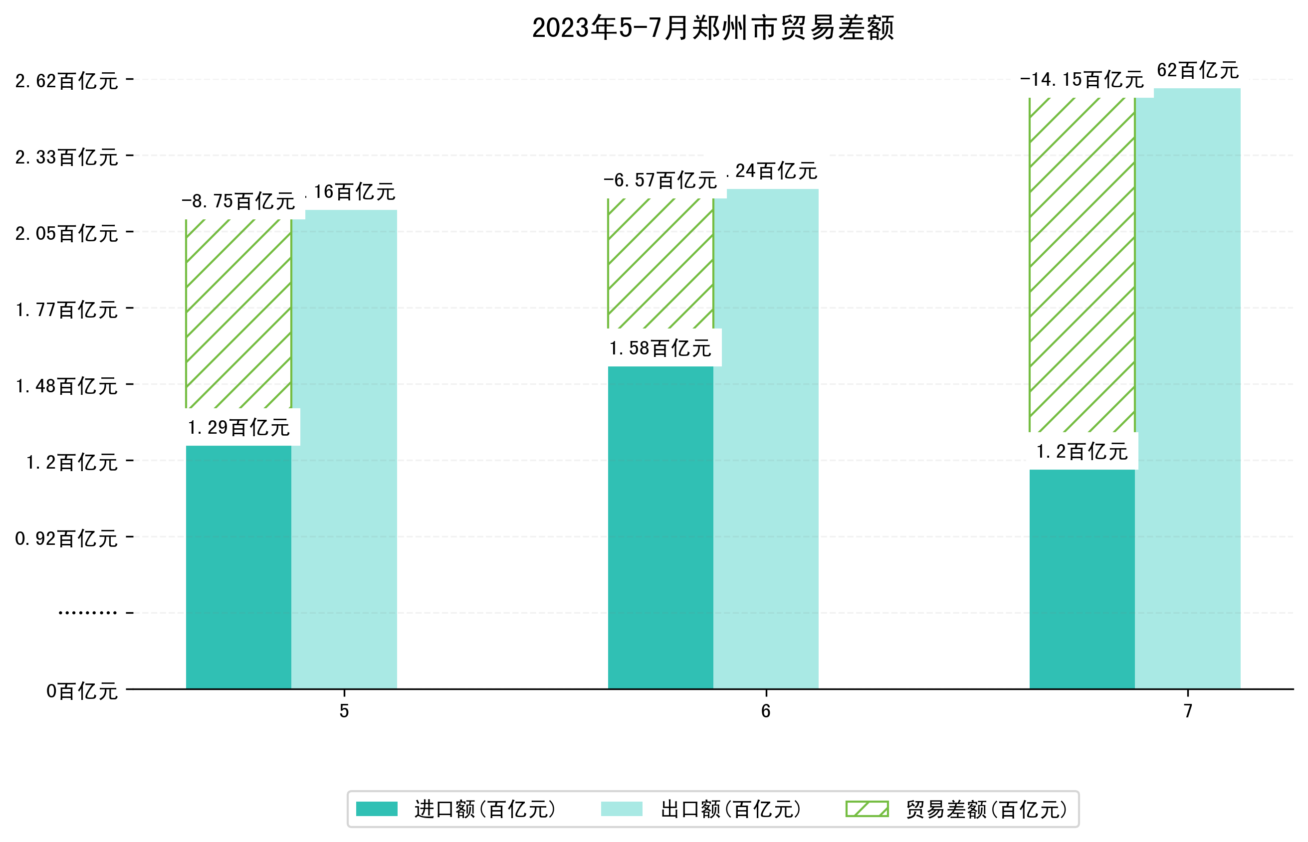 (图四:2023年5-7月郑州市贸易差额)