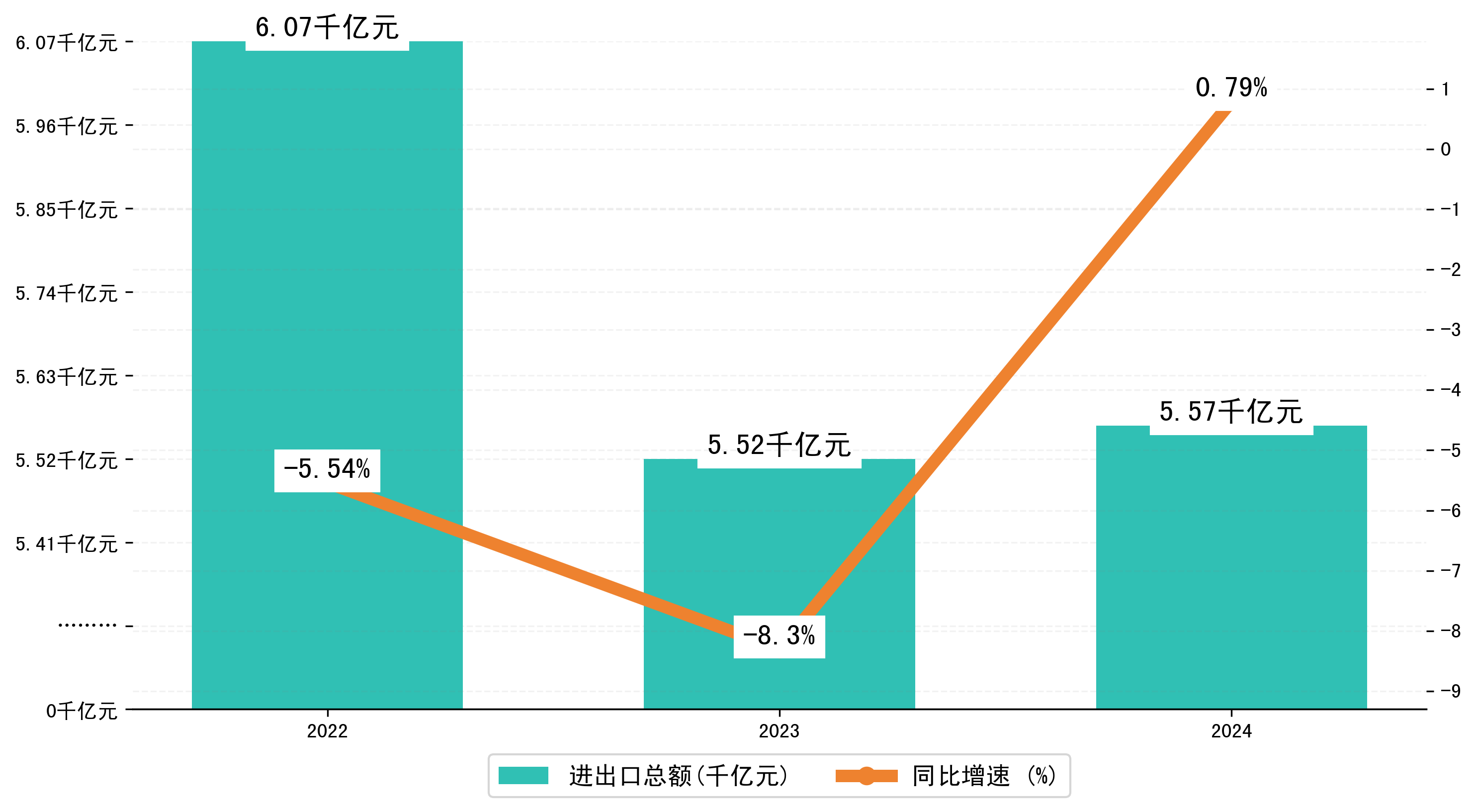 以人民币计,2024年1-12月郑州市进出口总额为5565,8244.17万元,相比上年同期增加了43,4841.7106万元,同比增加了0.80%。