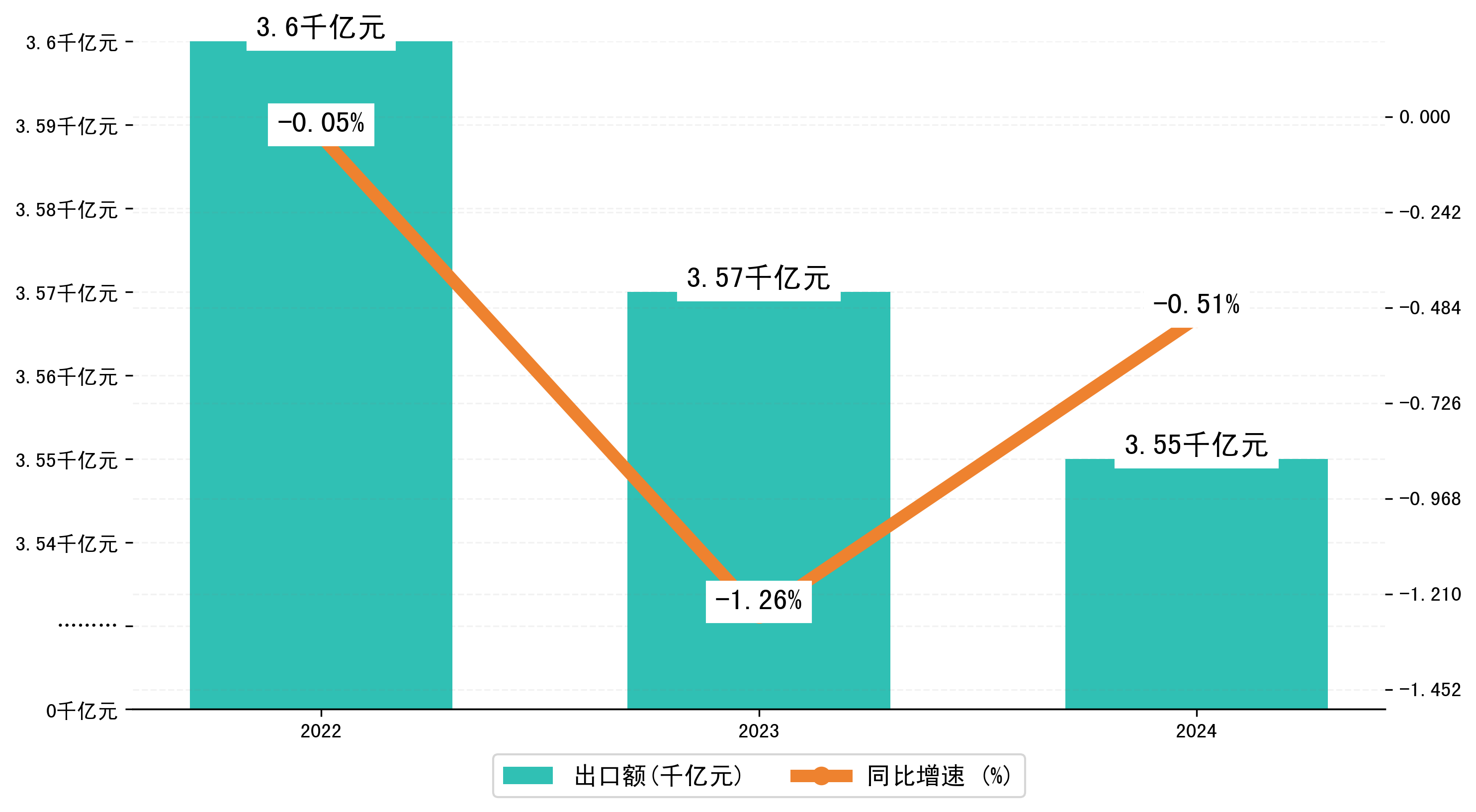 以人民币计,2024年1-12月郑州市出口额为3551,0069.2312万元,相比上年同期减少了18,1020.2001万元,同比减少了-0.50%。