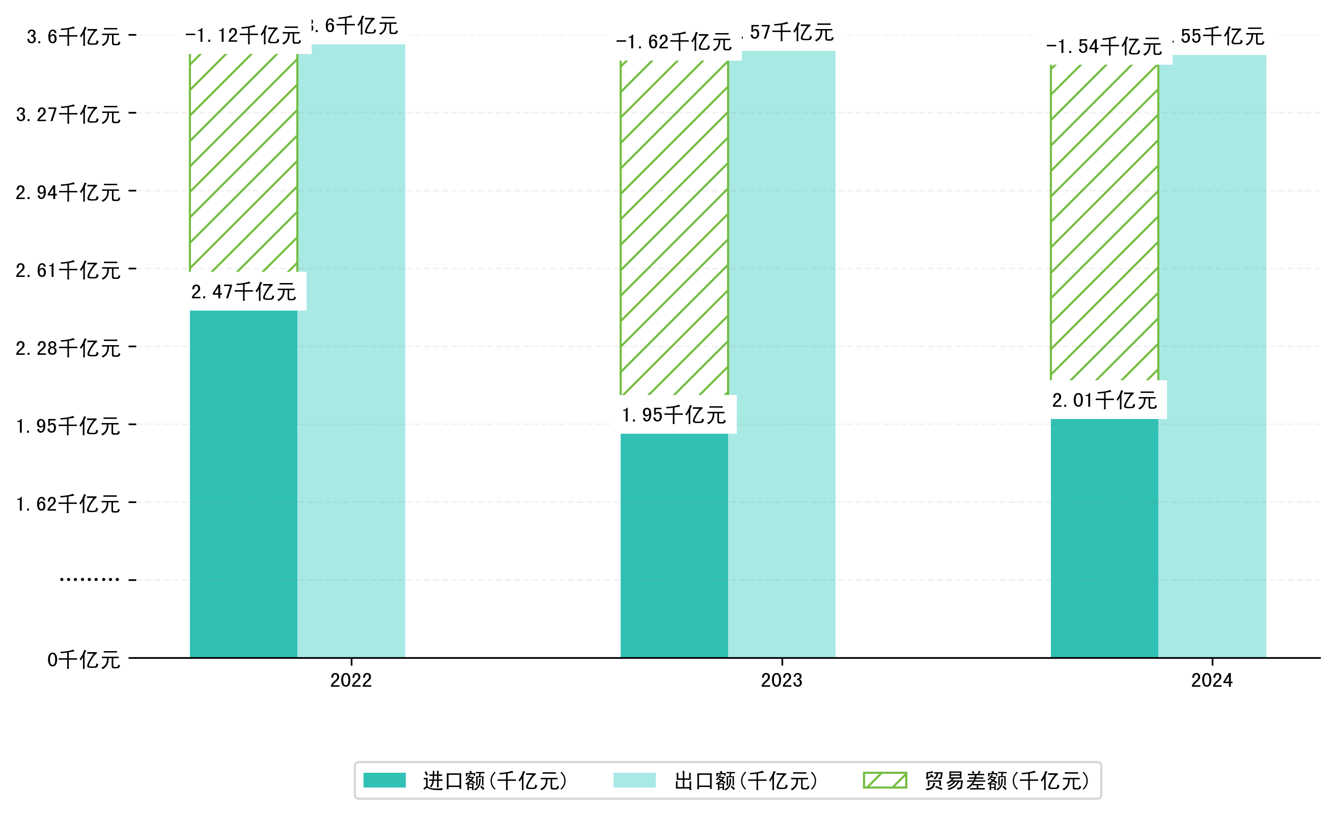 以美元计,2024年1-12月郑州市贸易差额为215,7178,3624万美元(贸易顺差),相比上年同期减少了13,9078,9558万美元,同比减少-6.06%。