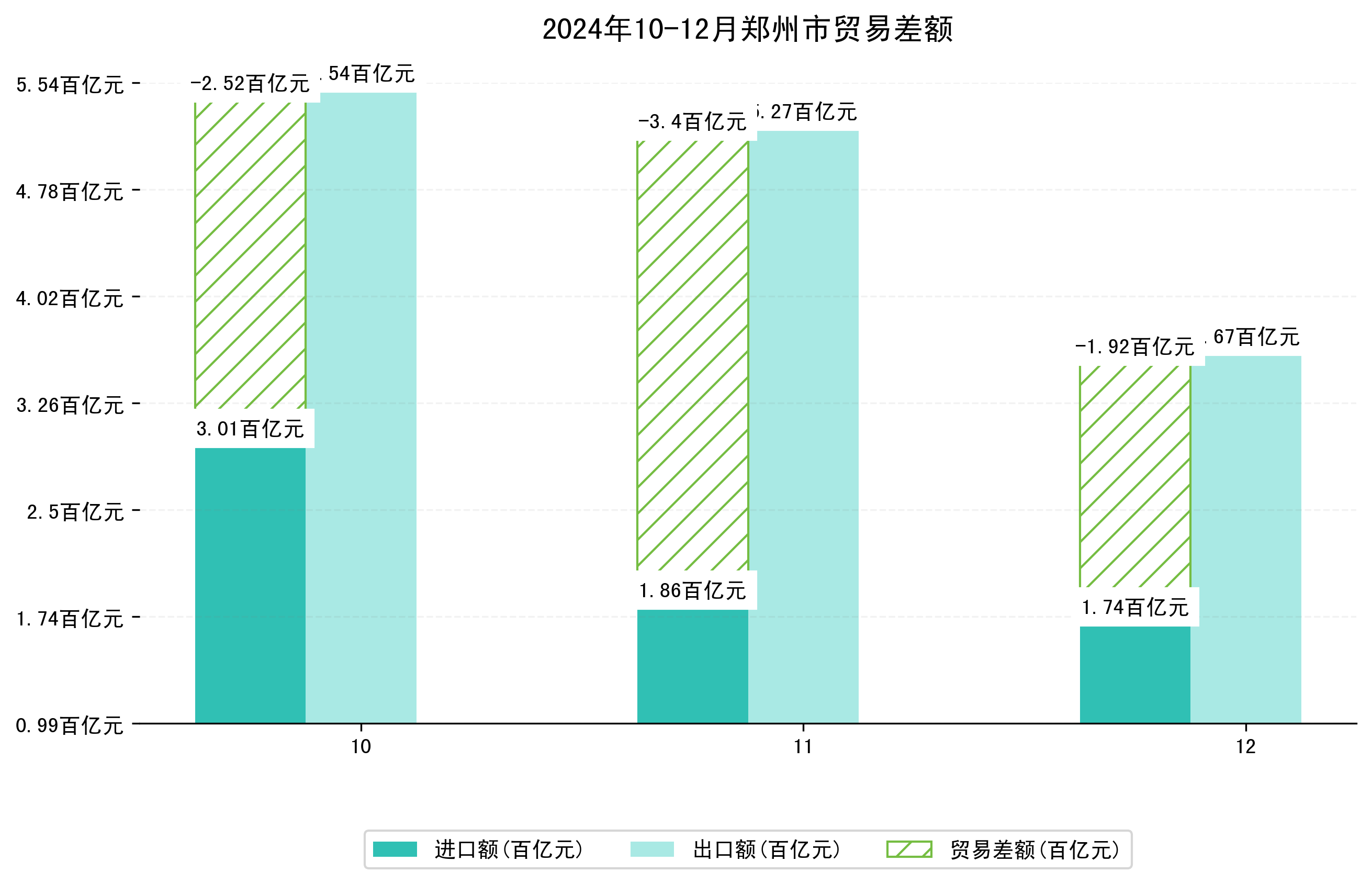 2024年12月郑州市进出口总额及进出口差额统计分析
