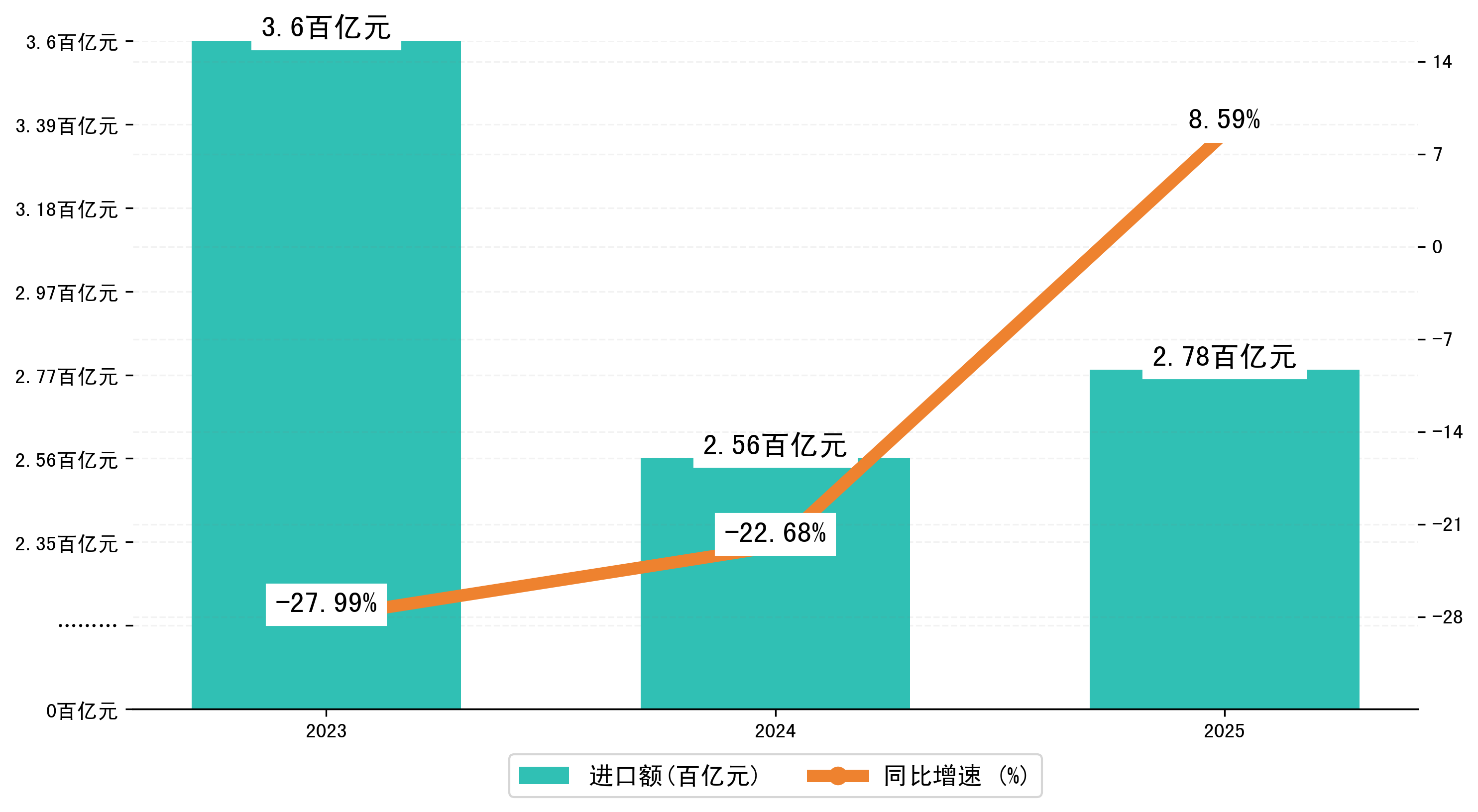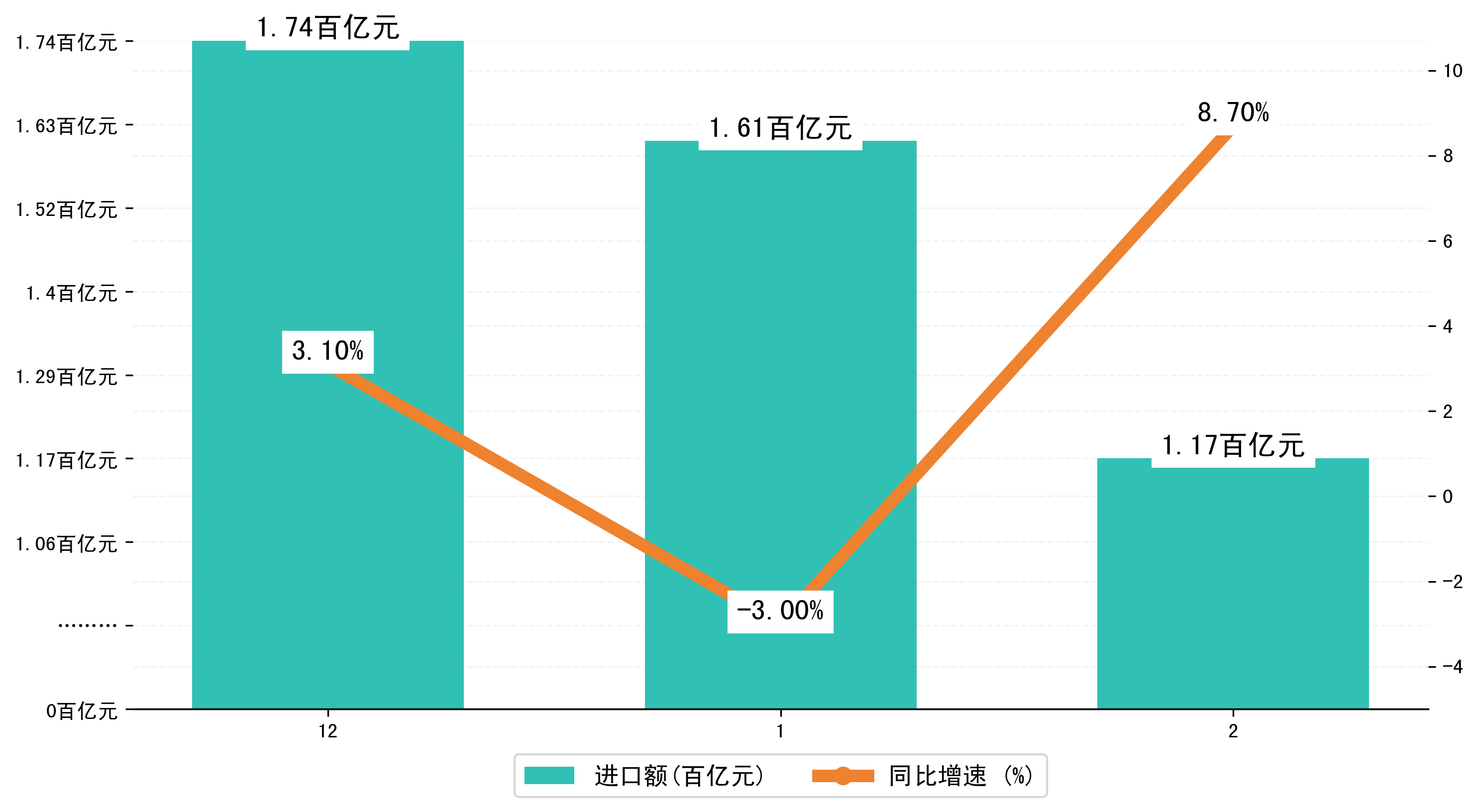 以人民币计,2025年1-2月郑州市进口额为278,0372.1889万元,相比上年同期增加了21,9906.2952万元,同比增加了8.70%。
