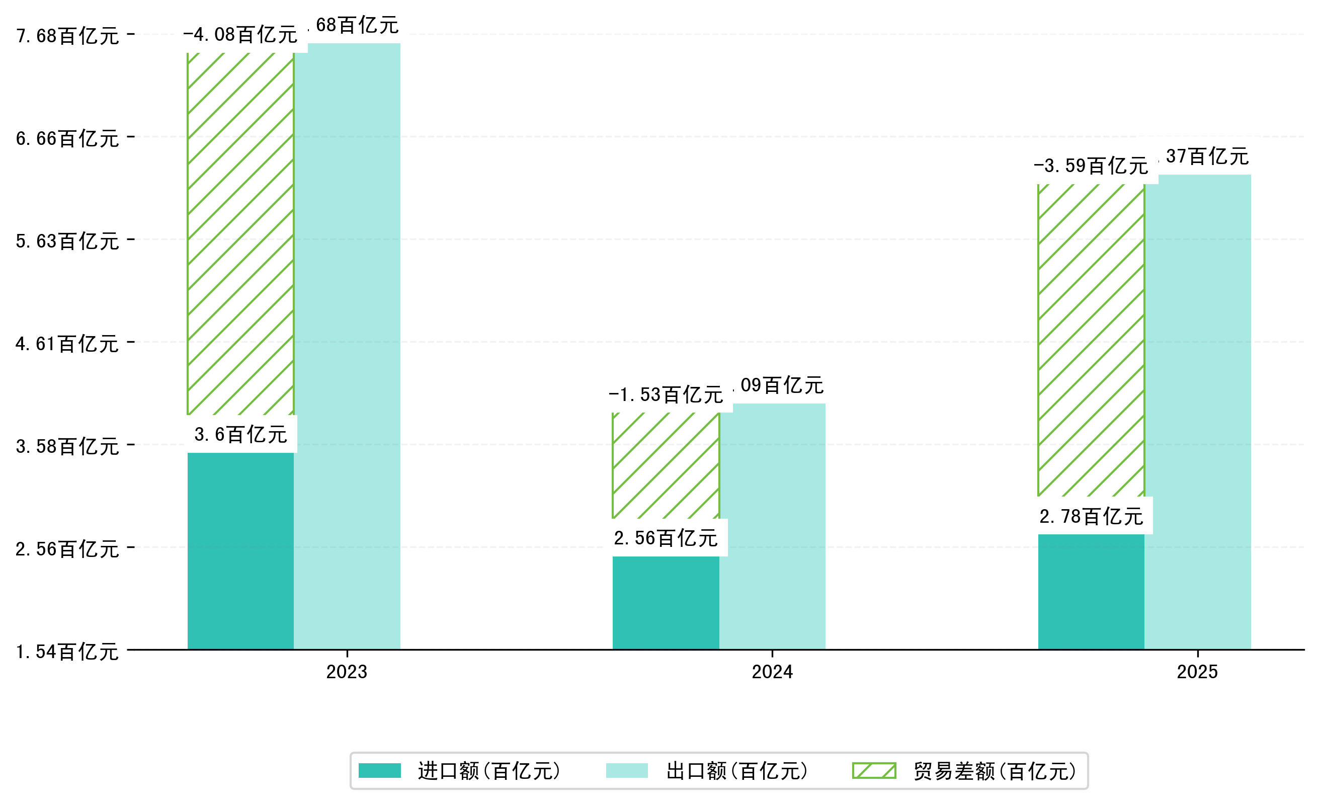 以人民币计,2025年2月郑州市贸易差额为206,8794,5084万元(贸易顺差),相比上月增加了54,5389,3642万元,即7,6066,5368万美元;相比上年同期增加了113,2558,8975万元,同比增加120.97%。