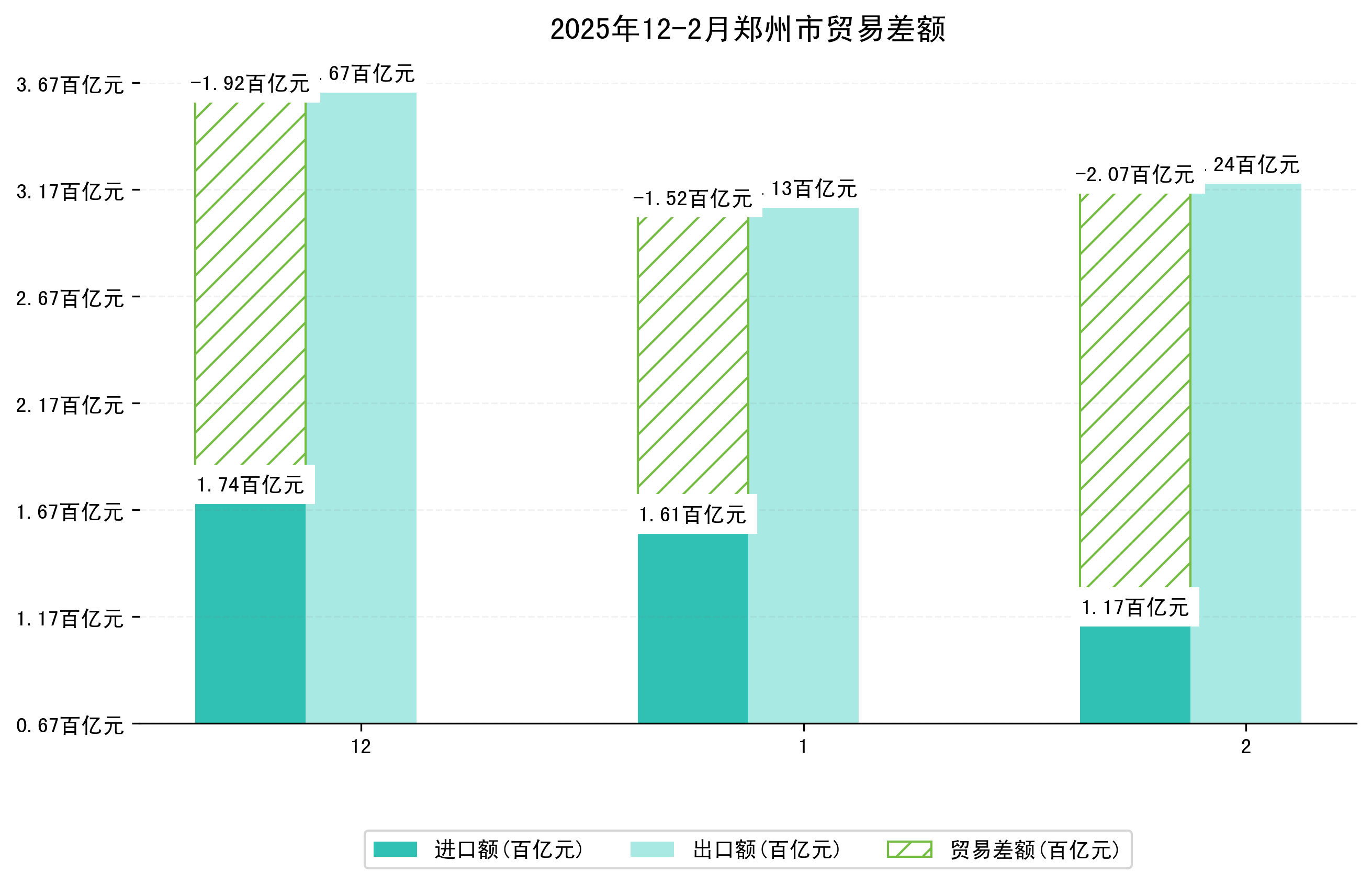 2025年2月郑州市进出口总额及进出口差额统计分析