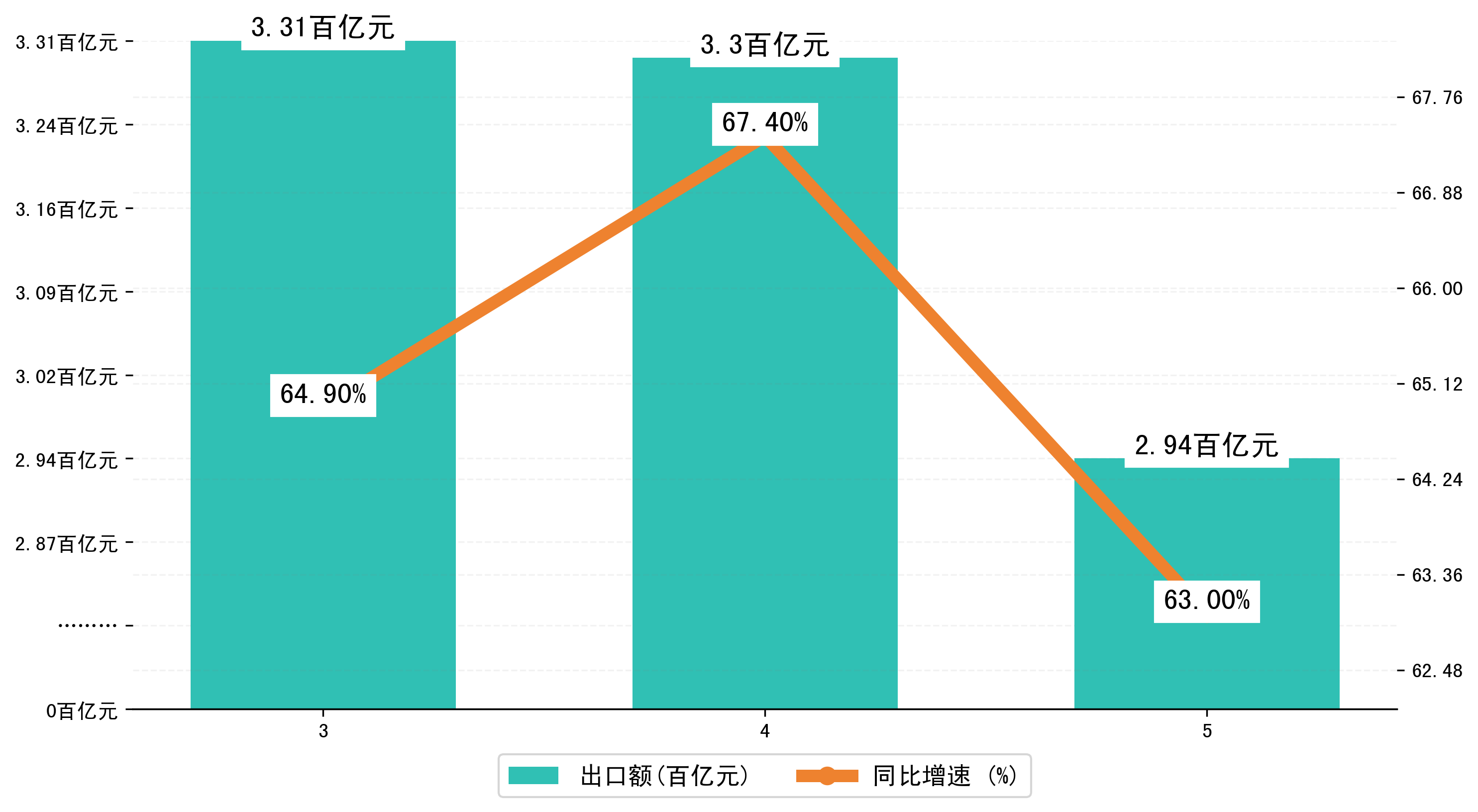以人民币计,2025年5月郑州市出口额为294,1181.9163万元,相比上月减少了35,5818.7711万元;相比上年同期增加了92,7582.3922万元,同比增加了63.00%。