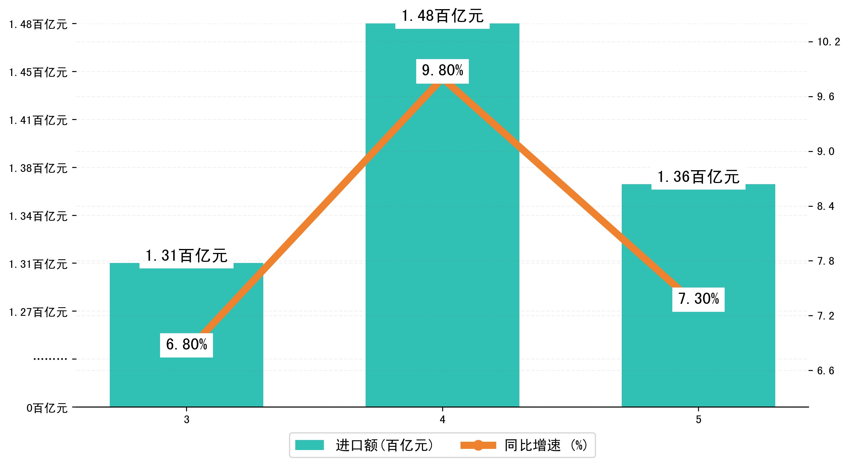以人民币计,2025年5月郑州市进口额为136,4204.8966万元,相比上月减少了11,8153.7374万元;相比上年同期减少了2,8396.9809万元,同比增加了7.30%。