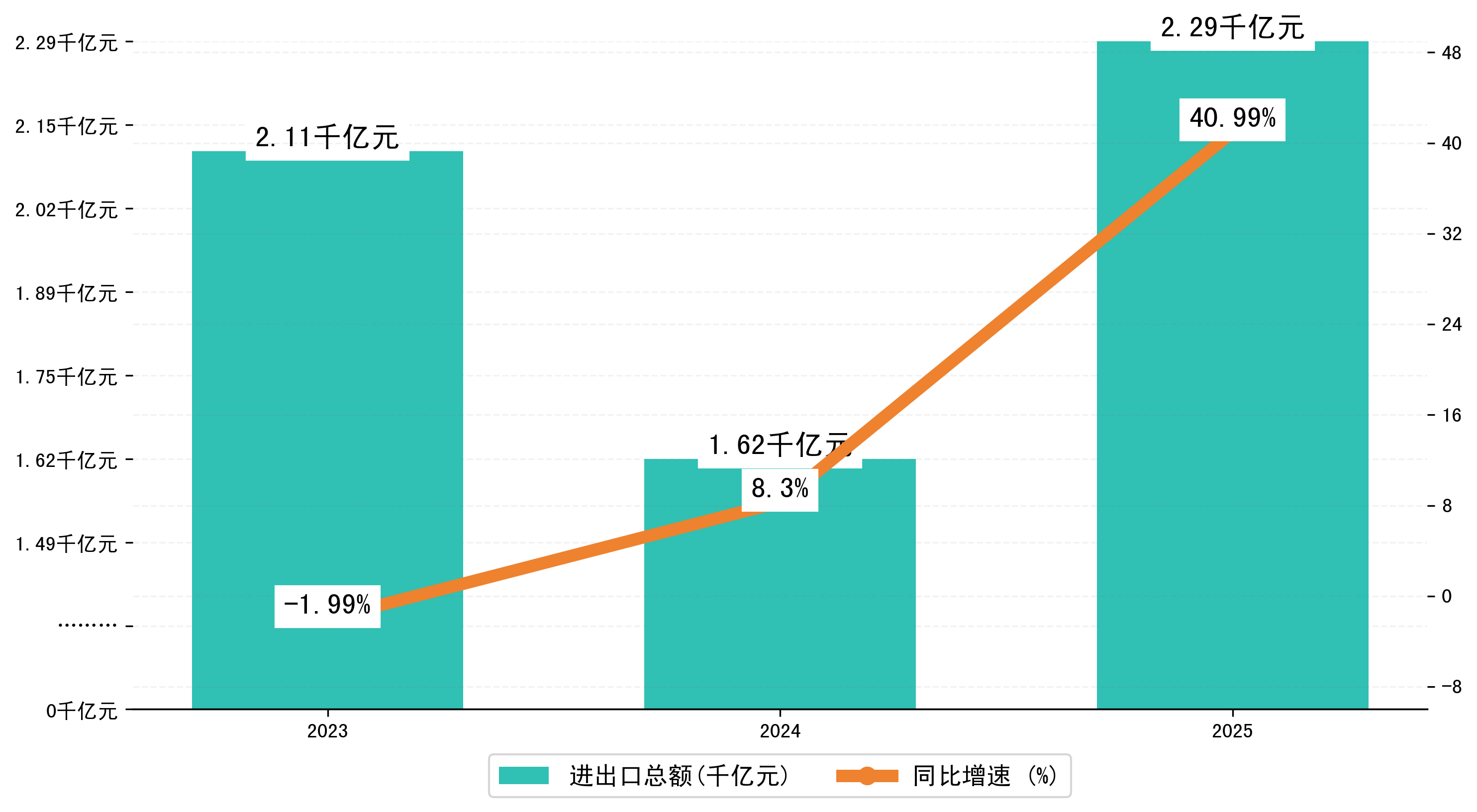 以人民币计,2025年1-5月郑州市进出口总额为2285,7369.6325万元,相比上年同期增加了664,5845.4777万元,同比增加了40.80%。