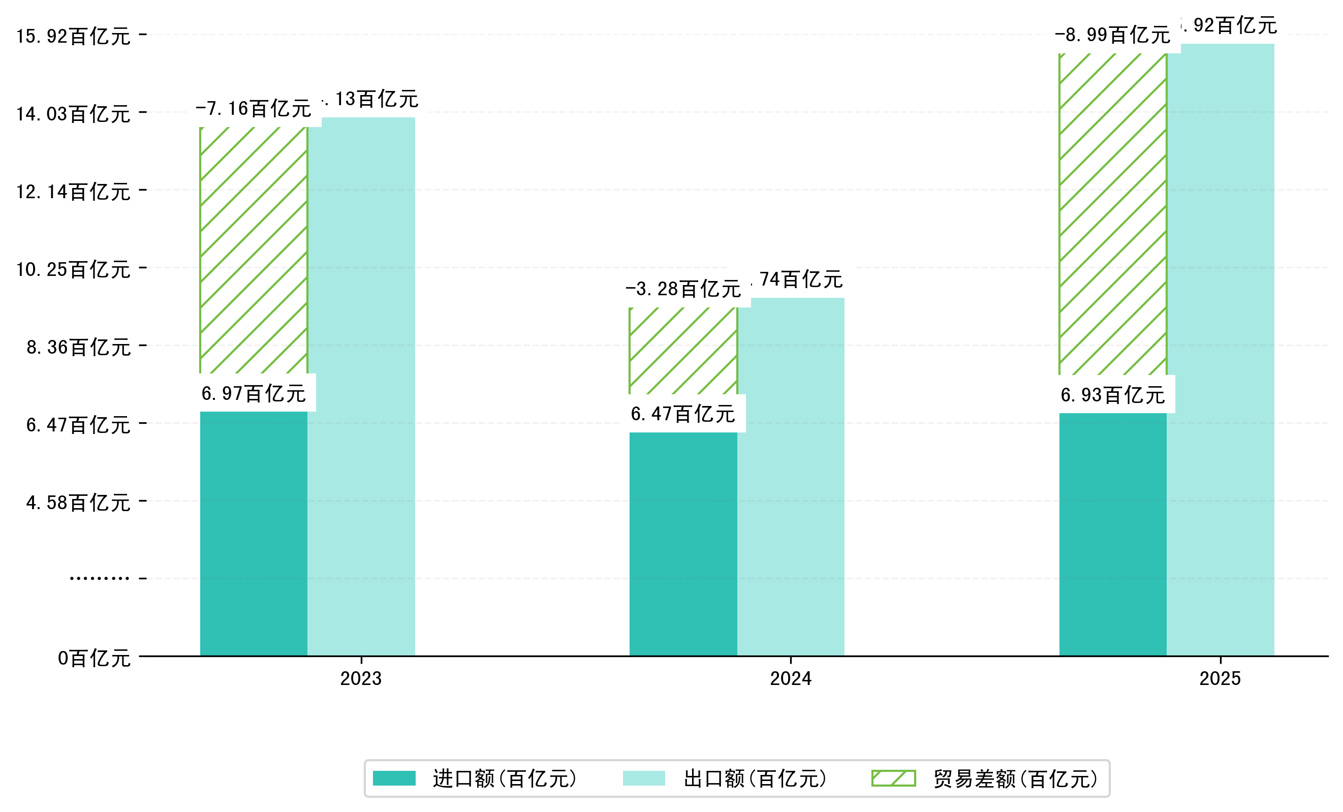 以人民币计,2025年1-5月郑州市贸易差额为899,0004,7063万元(贸易顺差),相比上年同期增加了571,4445,6395万元,同比增加174.46%。