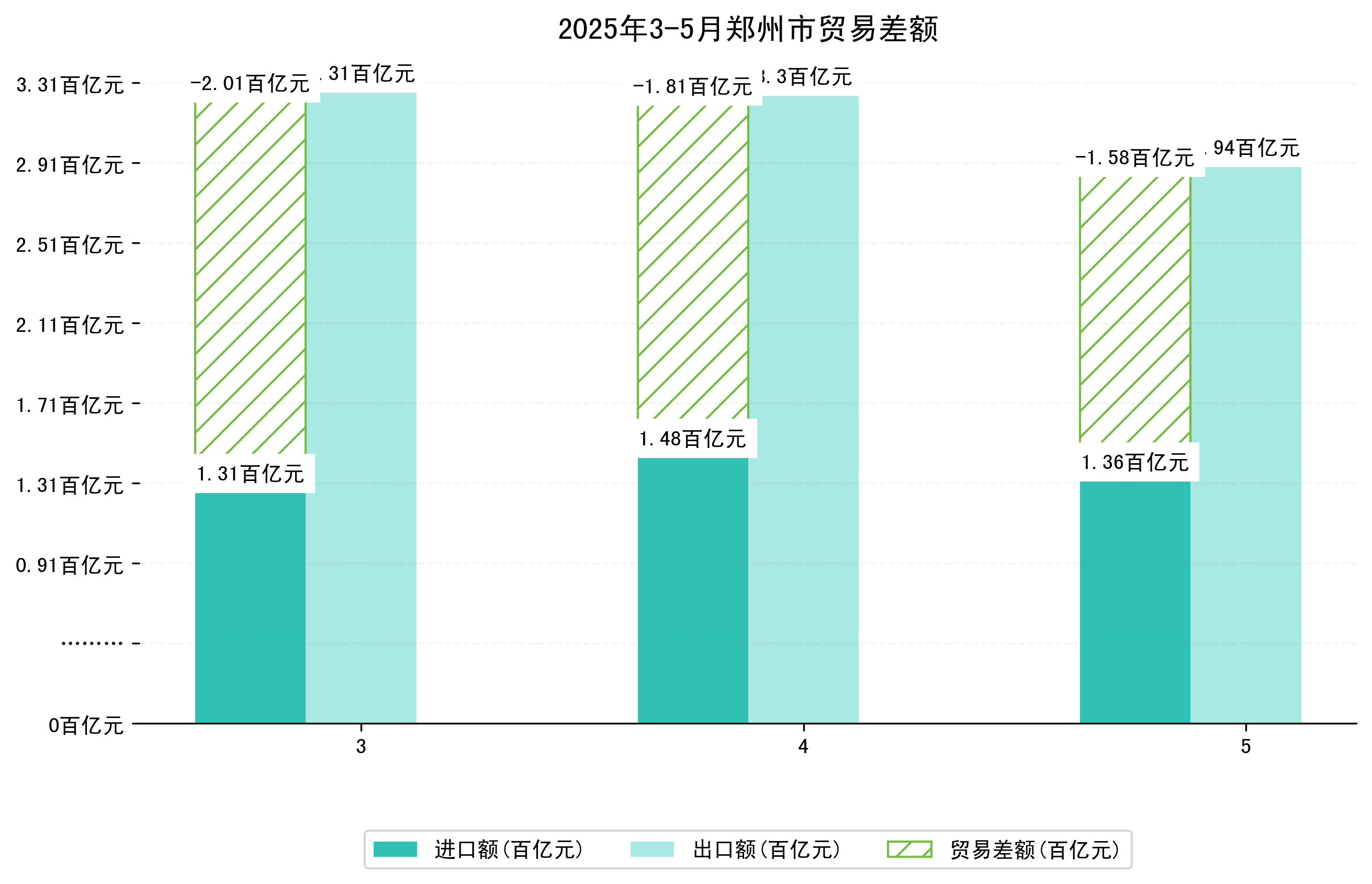 2025年5月郑州市进出口总额及进出口差额统计分析