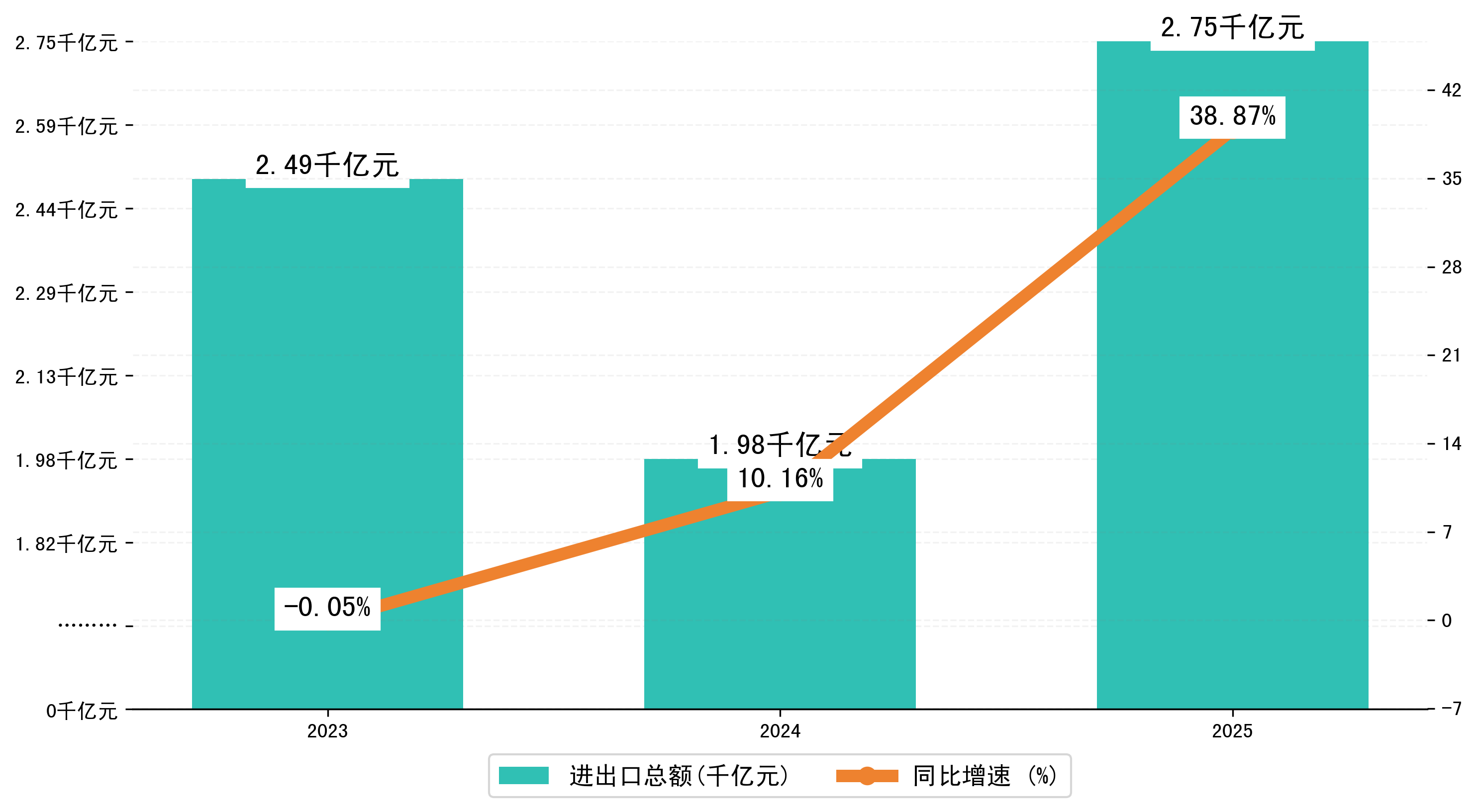 以人民币计,2025年1-6月郑州市进出口总额为2746,8236.0452万元,相比上年同期增加了768,7784.9182万元,同比增加了38.70%。