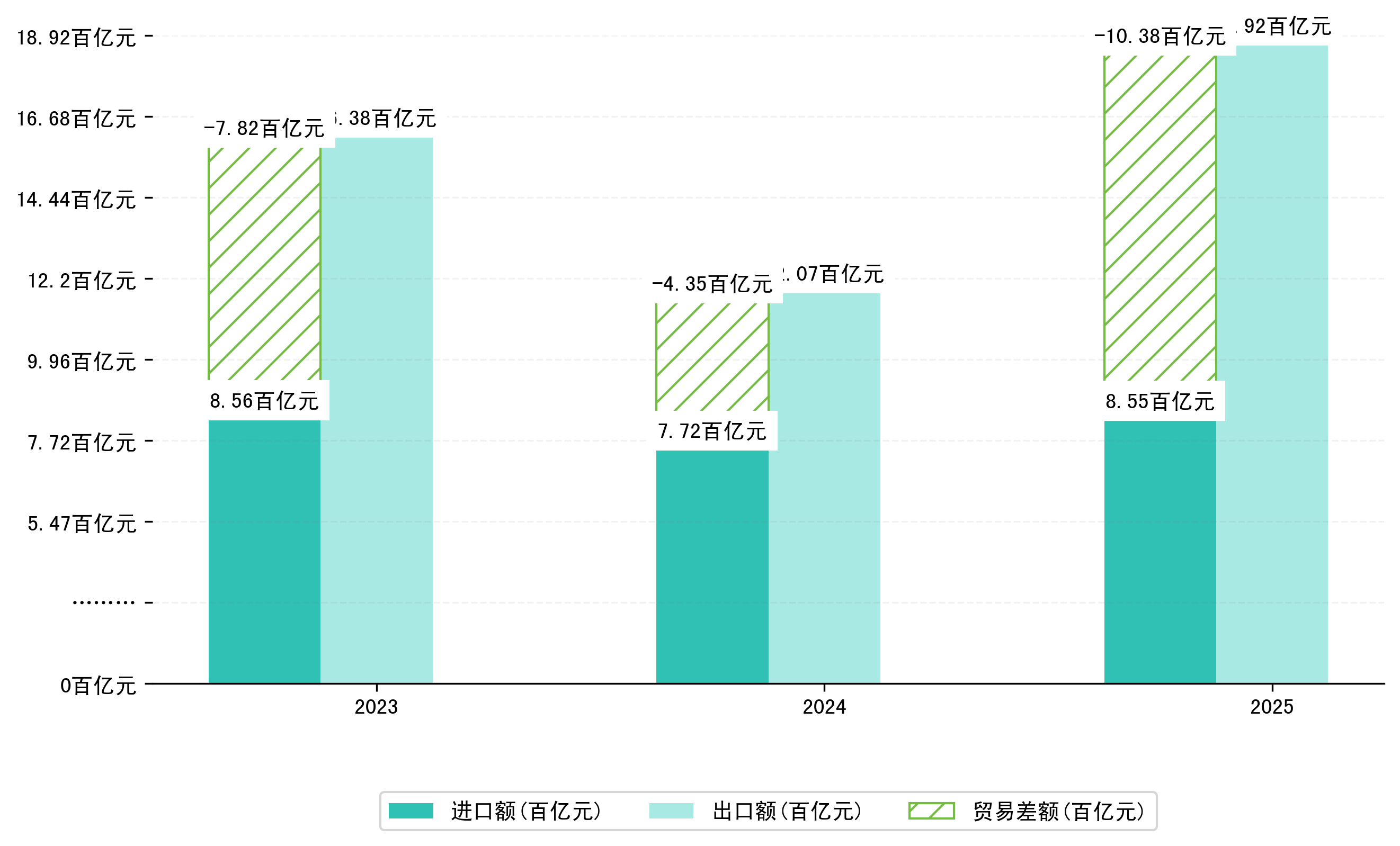 (图八:2023-2025年1-6月郑州市累计贸易差额)