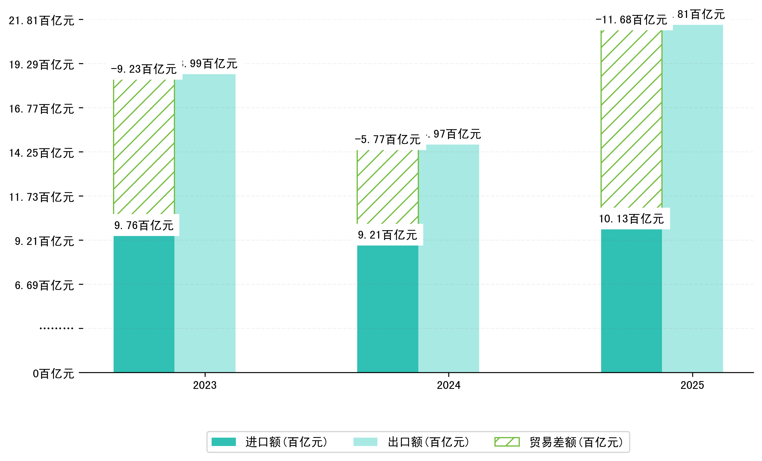 以人民币计,2025年1-7月郑州市贸易差额为1168,2513,4496万元(贸易顺差),相比上年同期增加了591,5992,6688万元,同比增加102.59%。