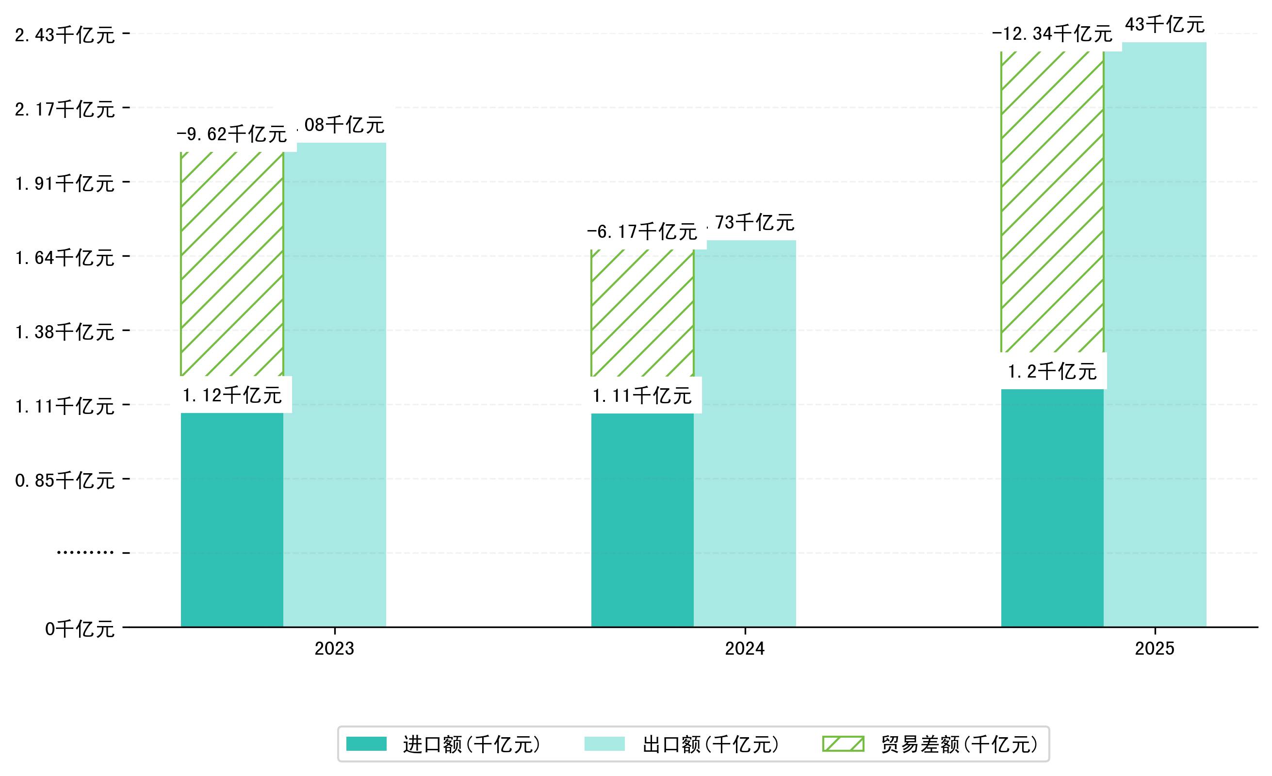 以人民币计,2025年1-8月郑州市贸易差额为1233,7710,9608万元(贸易顺差),相比上年同期增加了617,2095,5153万元,同比增加100.11%。