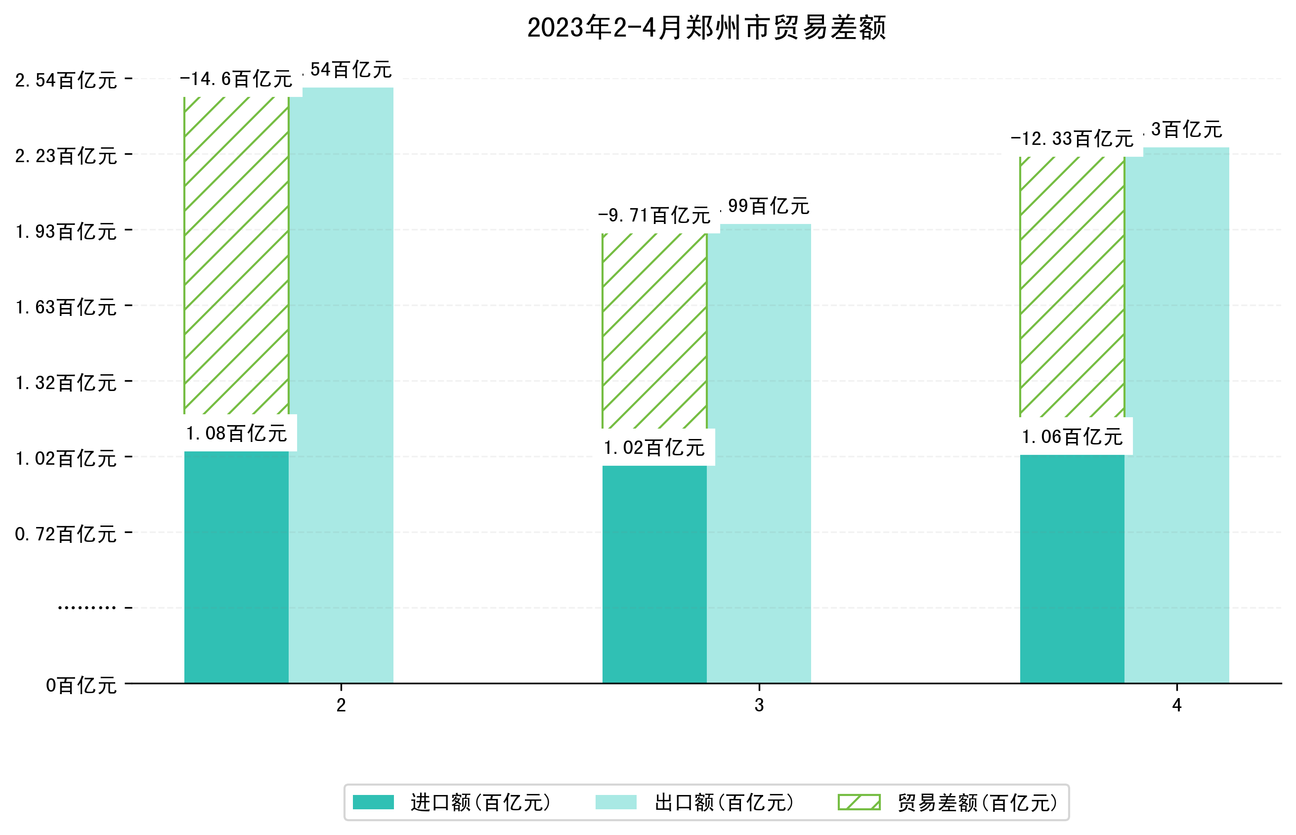 一、2023年4月郑州市单月出口总额及进出口差额统计分析