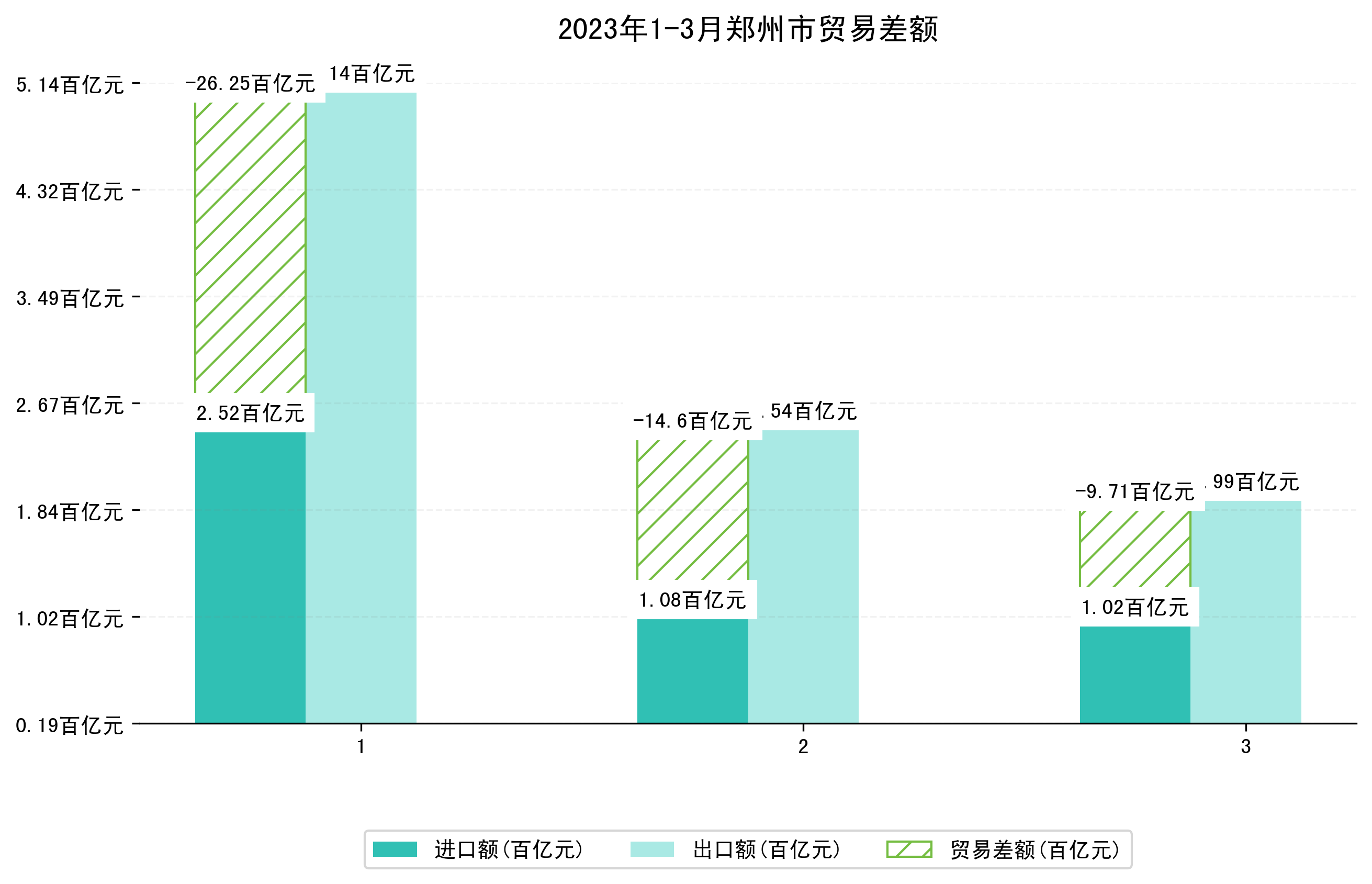 一、2023年3月郑州市单月出口总额及进出口差额统计分析