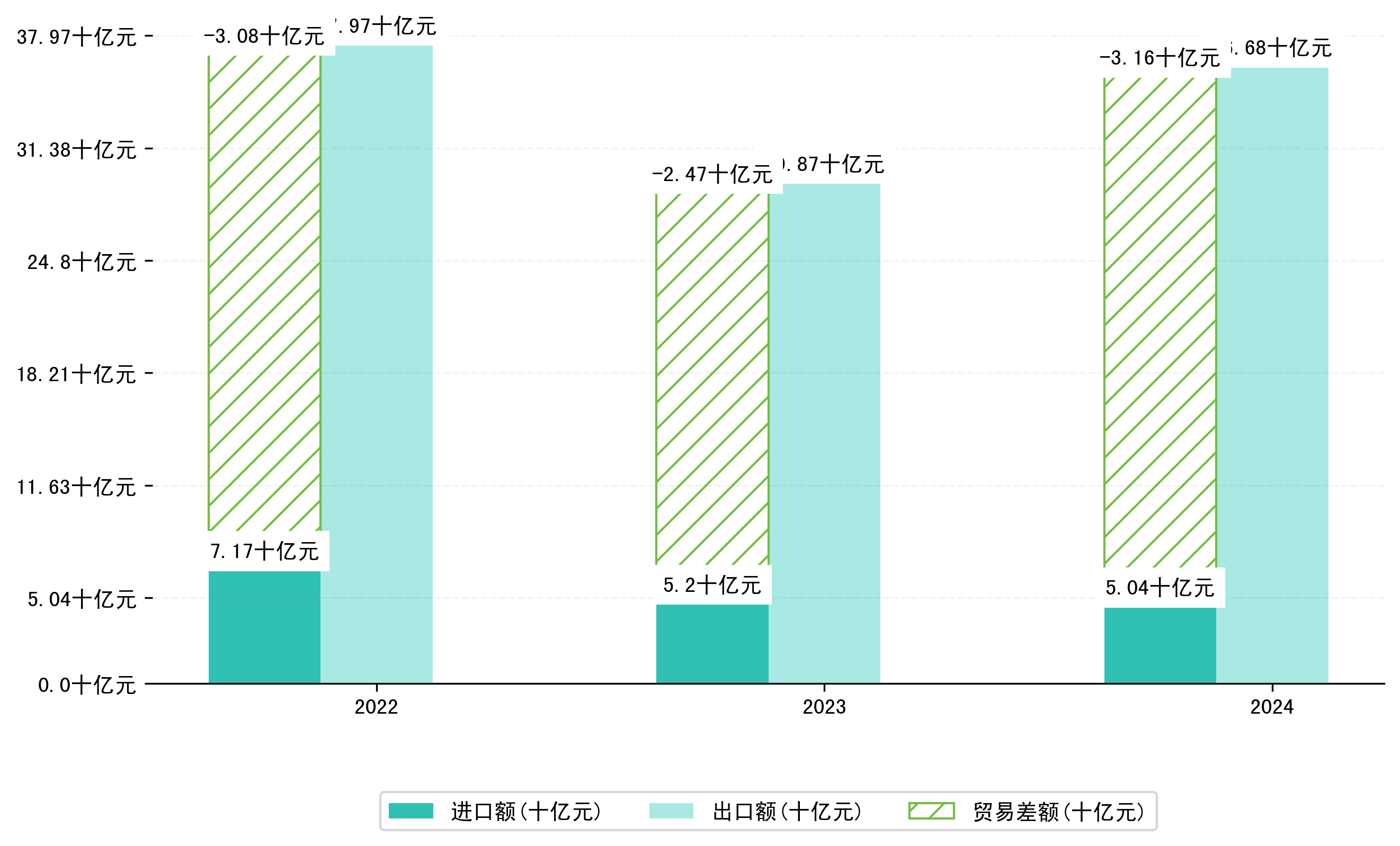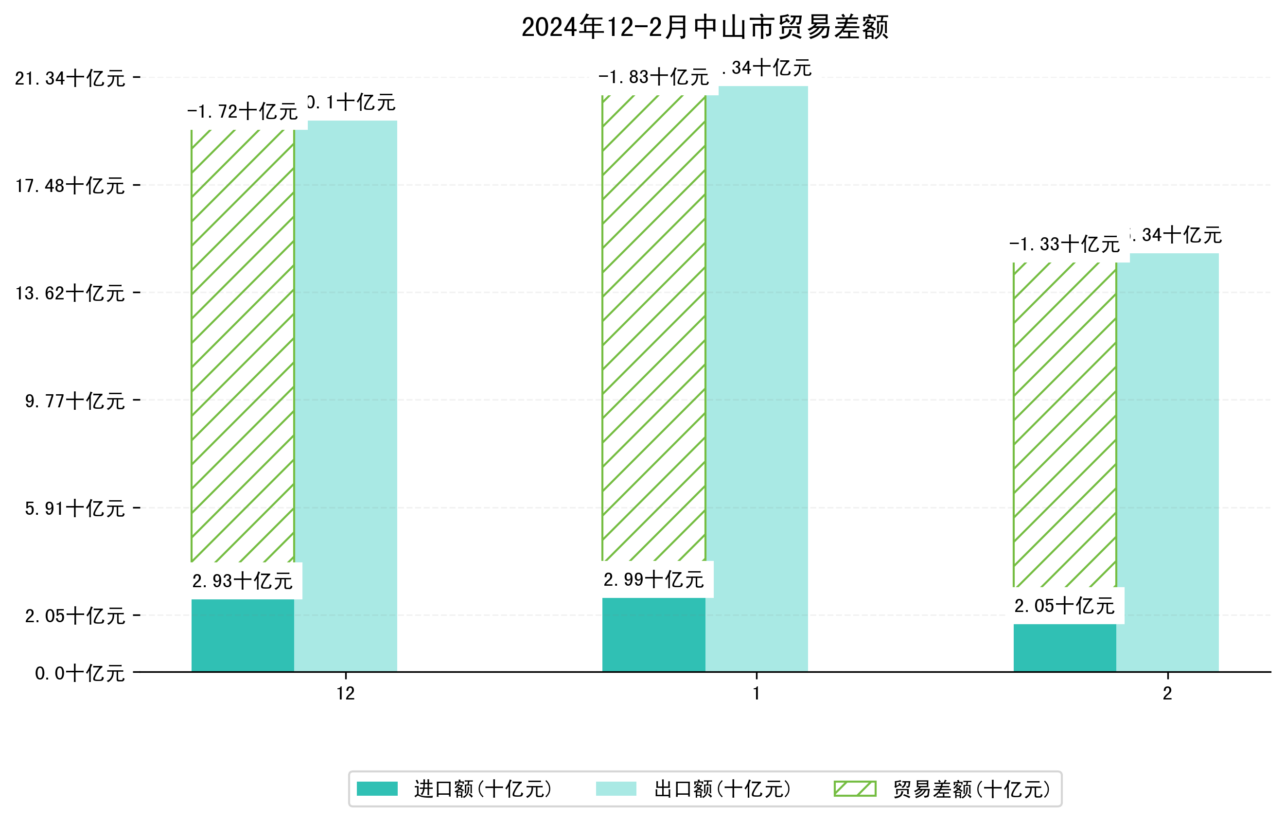 以美元计,2024年1-2月中山市贸易差额为44,5094,4054万美元(贸易顺差),相比上年同期增加了8,7875,5238万美元,同比增加24.6%。
