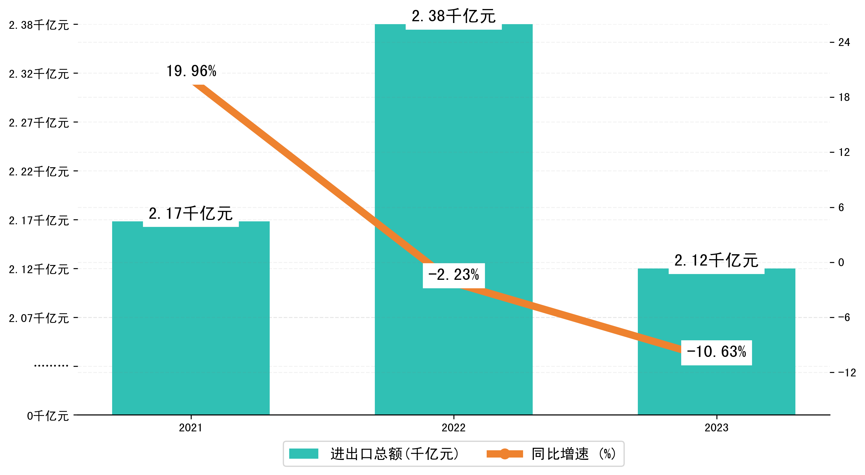 以人民币计,2023年1-10月中山市进出口总额为2122,8753.2366万元,相比上年同期减少了252,4757.6984万元,同比减少了-8.30%。