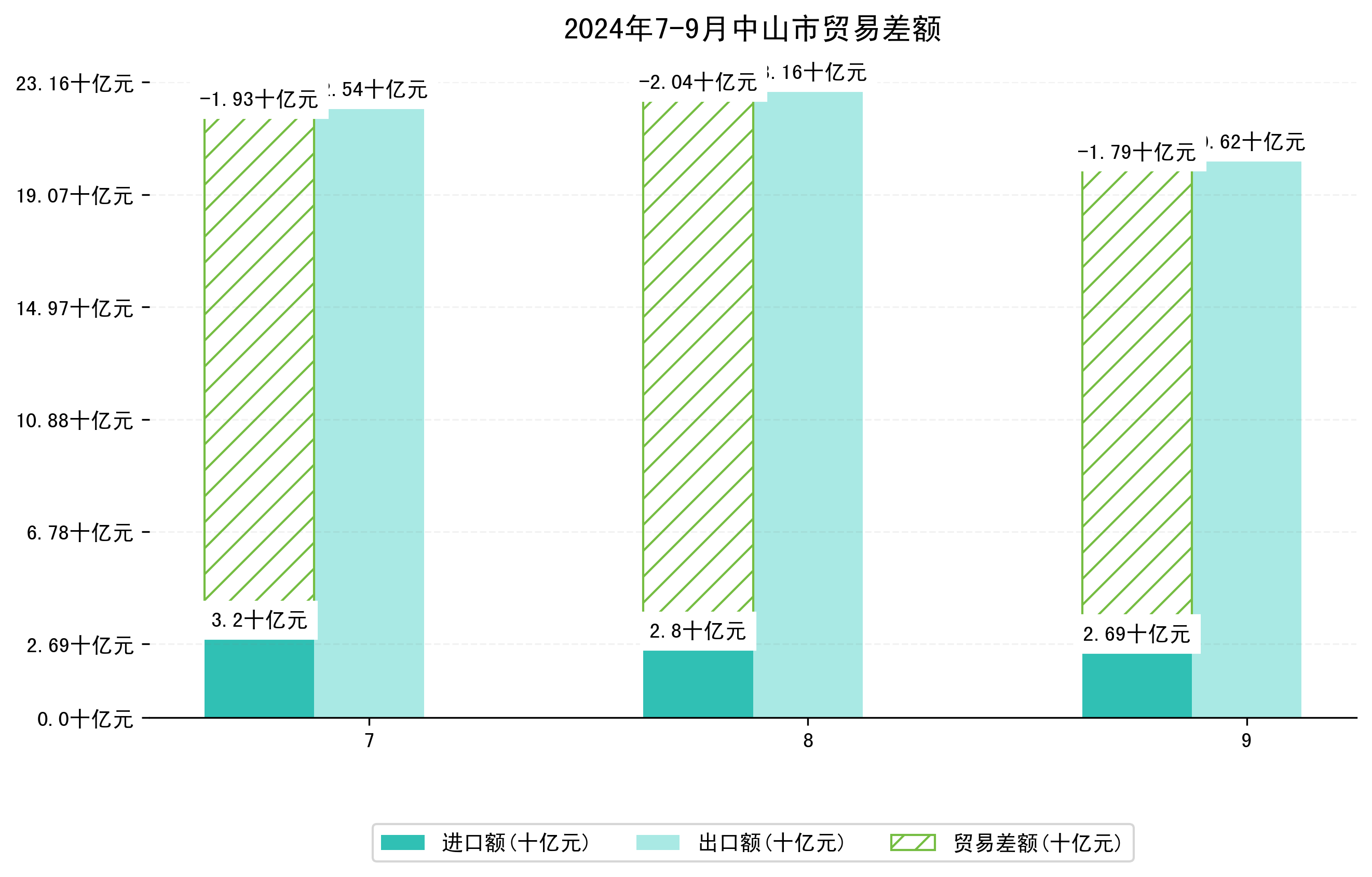 以人民币计,2024年1-9月中山市贸易差额为1597,5933,2431万元(贸易顺差),相比上年同期增加了227,7379,0222万元,同比增加16.62%。