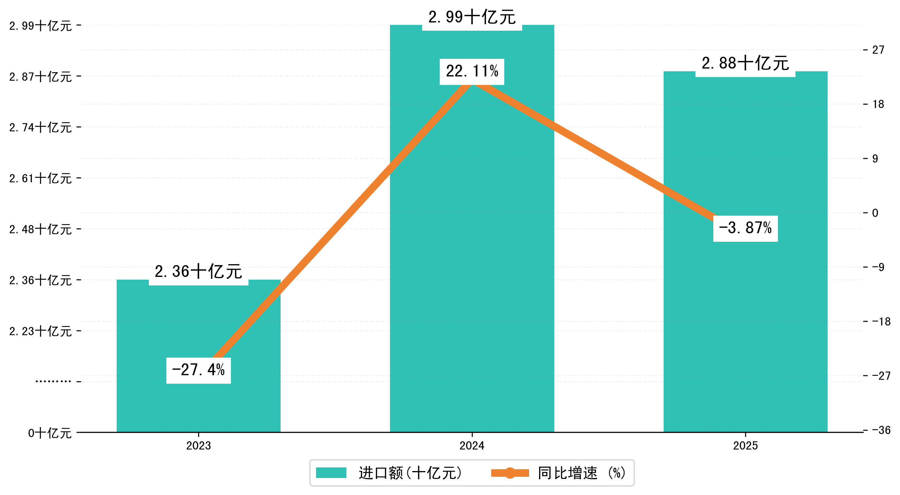 以人民币计,2025年1月中山市进口额为28,7668.2821万元,相比上月减少了5,6684.2859万元;相比上年同期减少了1,1571.7833万元,同比减少了-3.90%。