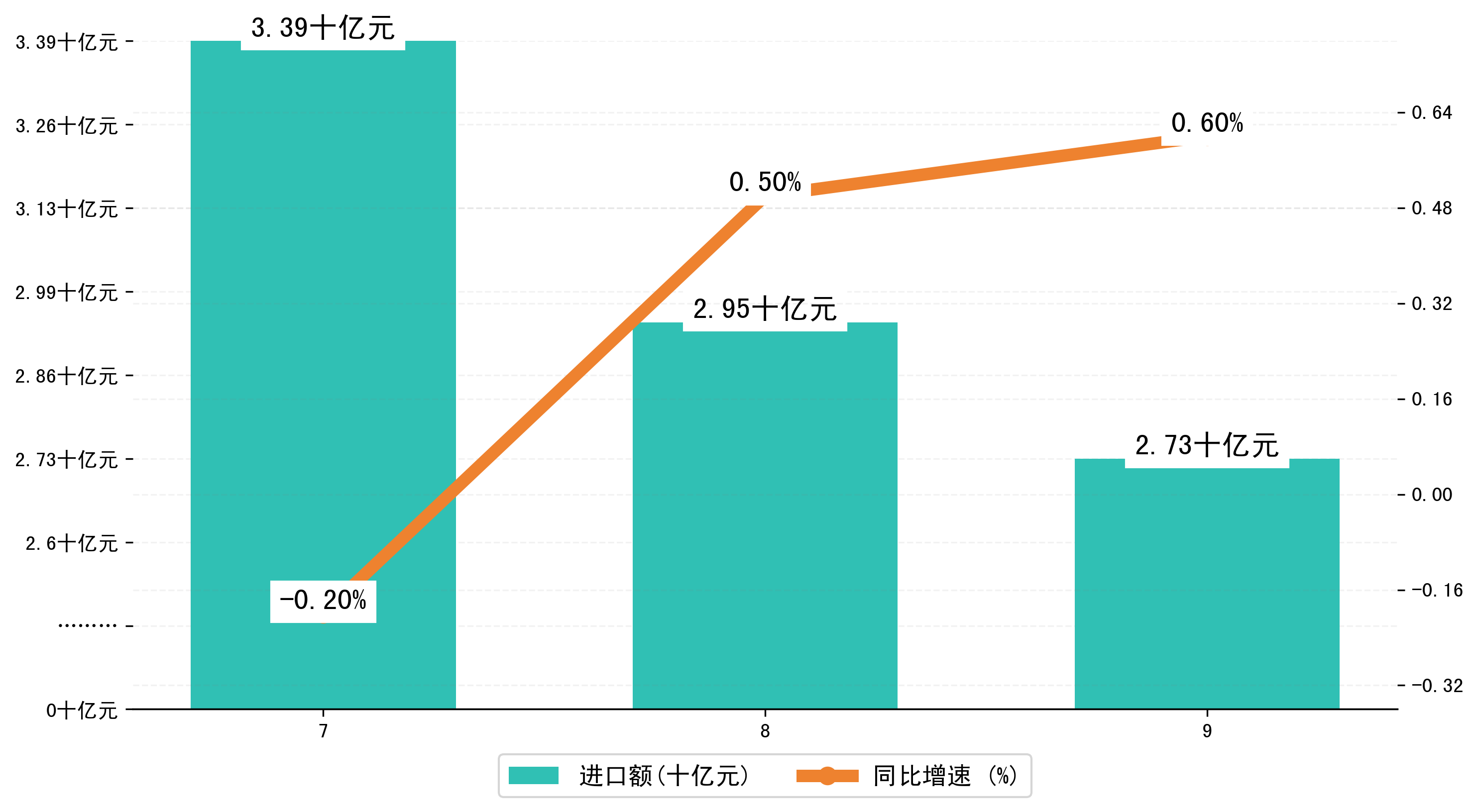 以人民币计,2025年9月中山市进口额为27,3302.3124万元,相比上月减少了2,1356.2862万元;相比上年同期增加了4334.6157万元,同比增加了0.60%。