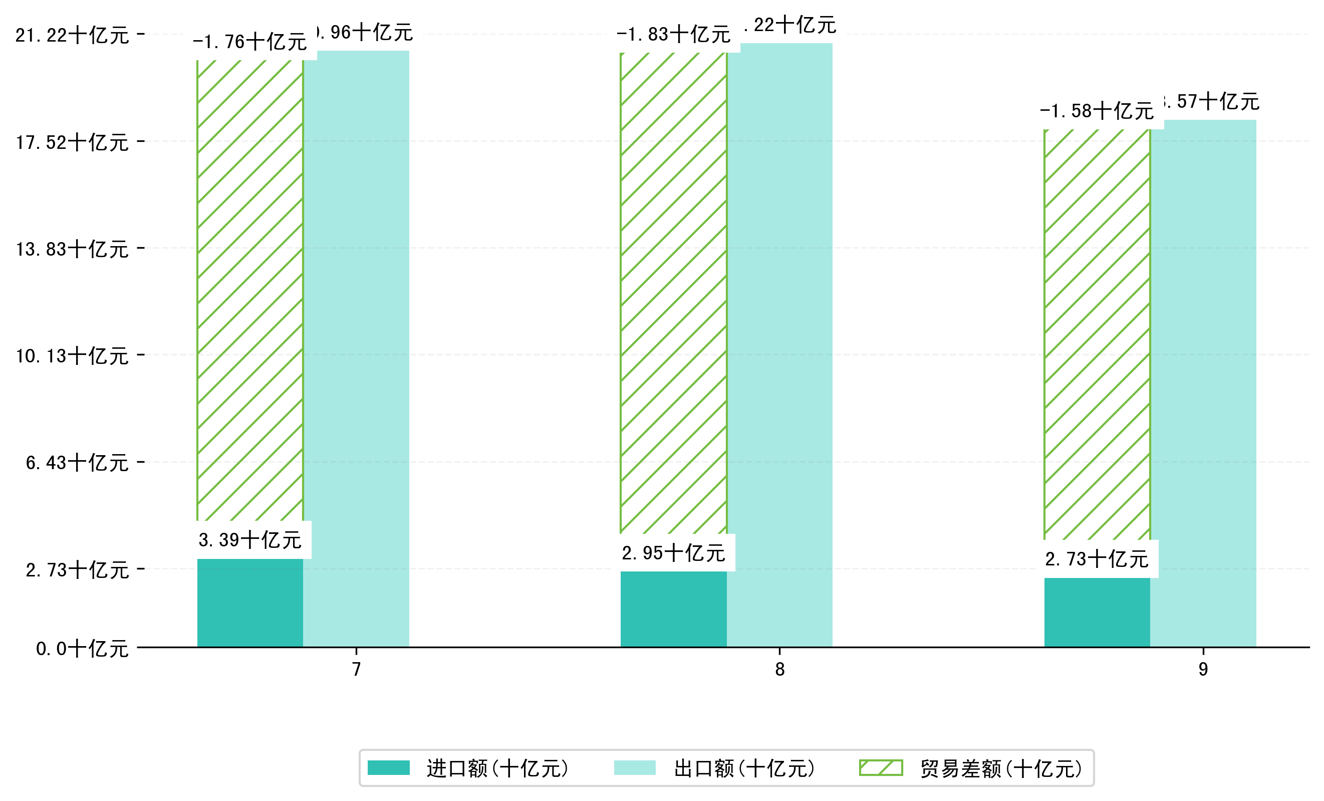 以人民币计,2025年9月中山市贸易差额为158,3861,8972万元(贸易顺差),相比上月减少了24,3770,0222万元,即3,3445,7770万美元;相比上年同期减少了20,9320,9728万元,同比减少-11.67%。