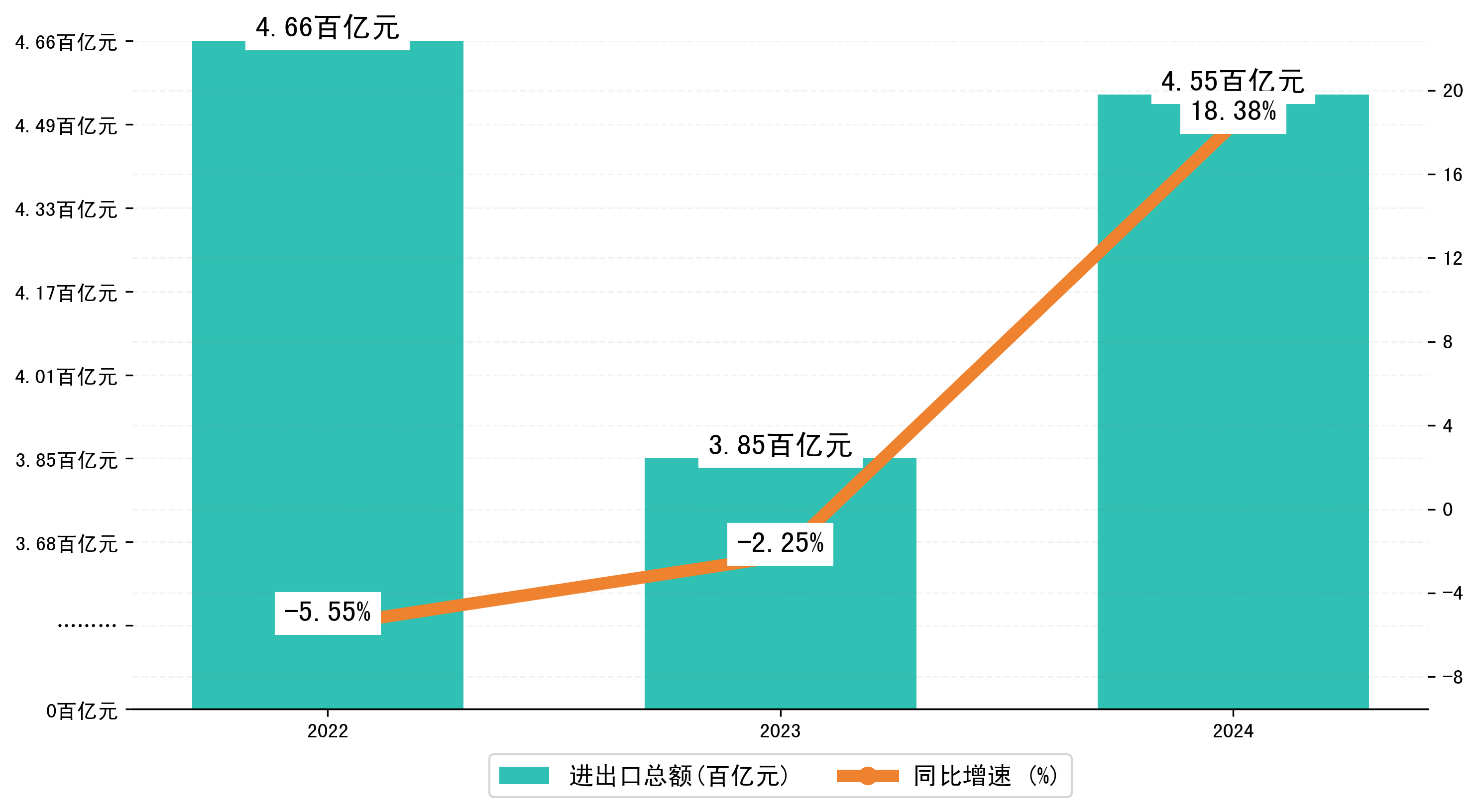 以人民币计,2024年1-2月珠海市进出口总额为455,2405.5897万元,相比上年同期增加了70,6912.8087万元,同比增加了17.40%。