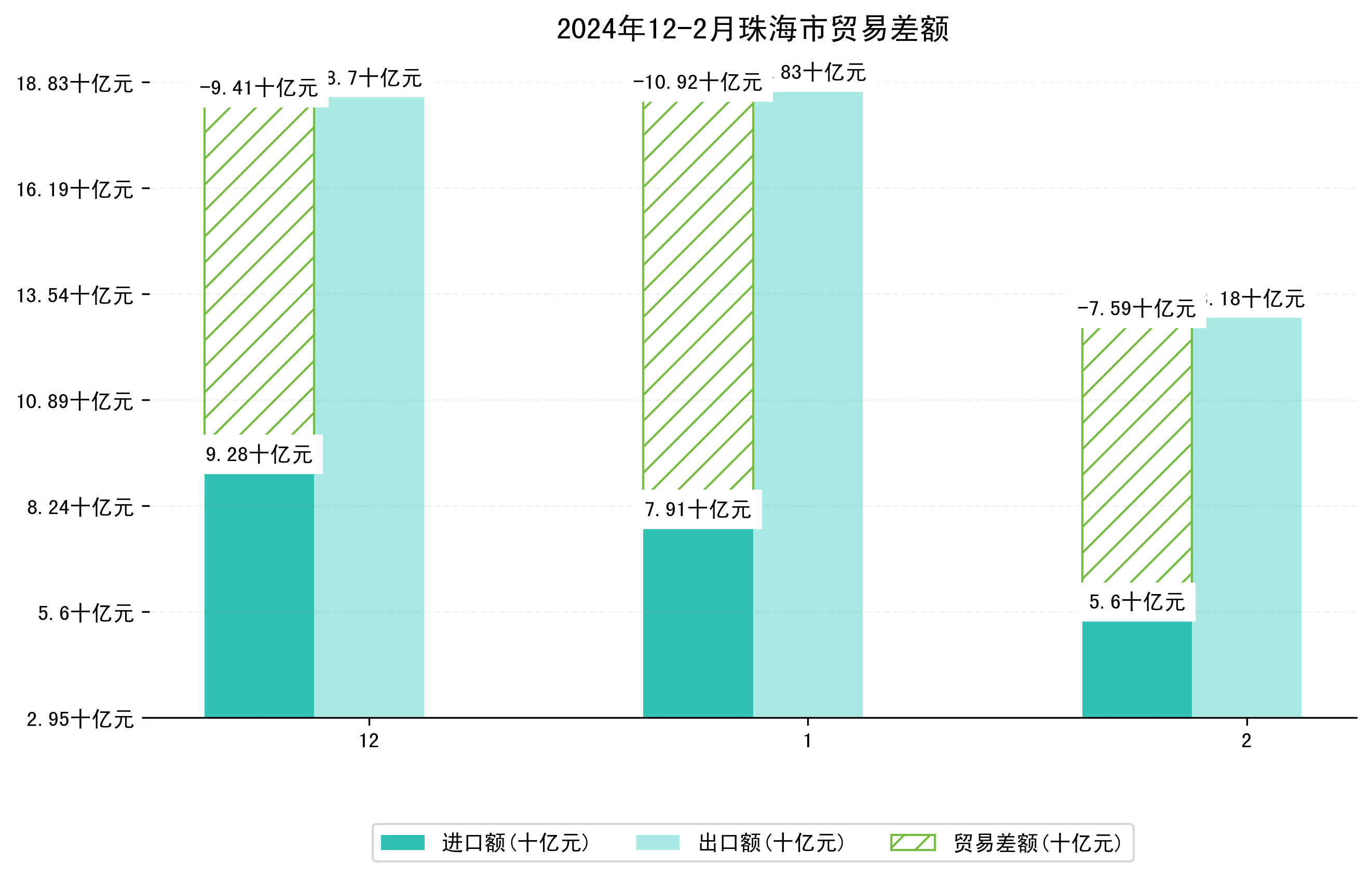 2024年2月珠海市进出口总额及进出口差额统计分析