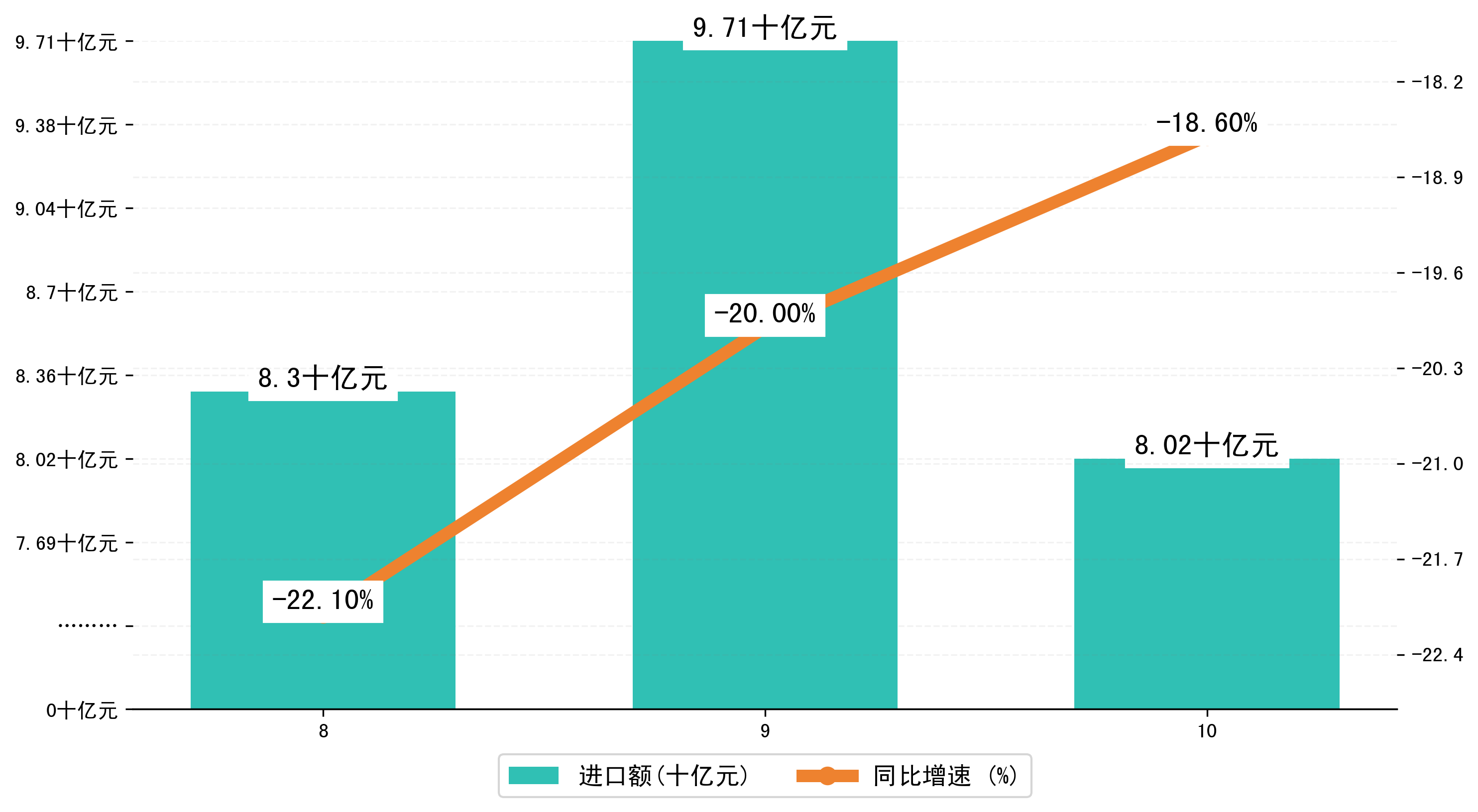 以人民币计,2023年10月珠海市进口额为80,2351.8321万元,相比上月减少了16,9009.909万元;相比上年同期减少了5,1441.2234万元,同比减少了-18.60%。