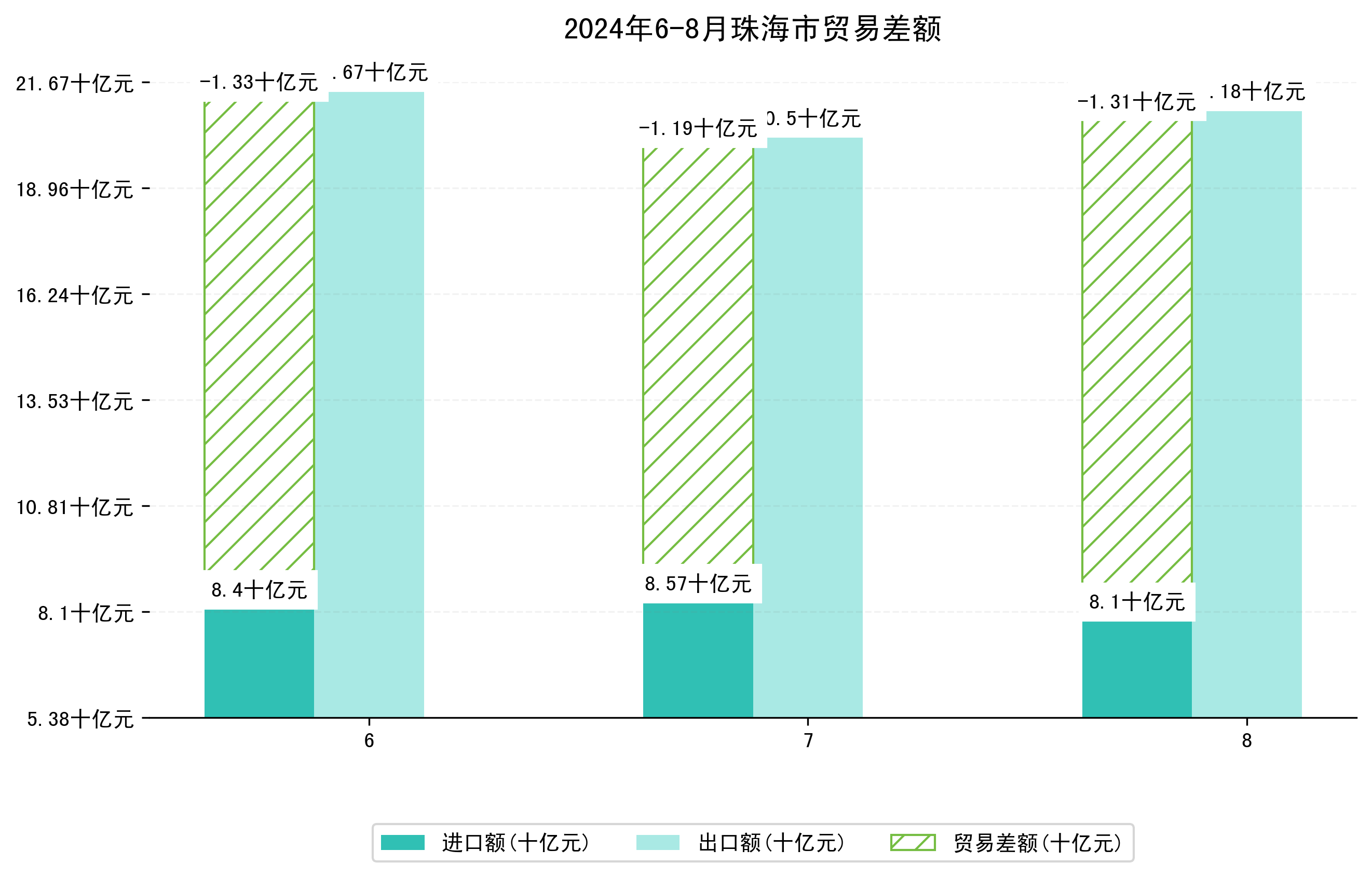 2024年8月珠海市进出口总额及进出口差额统计分析