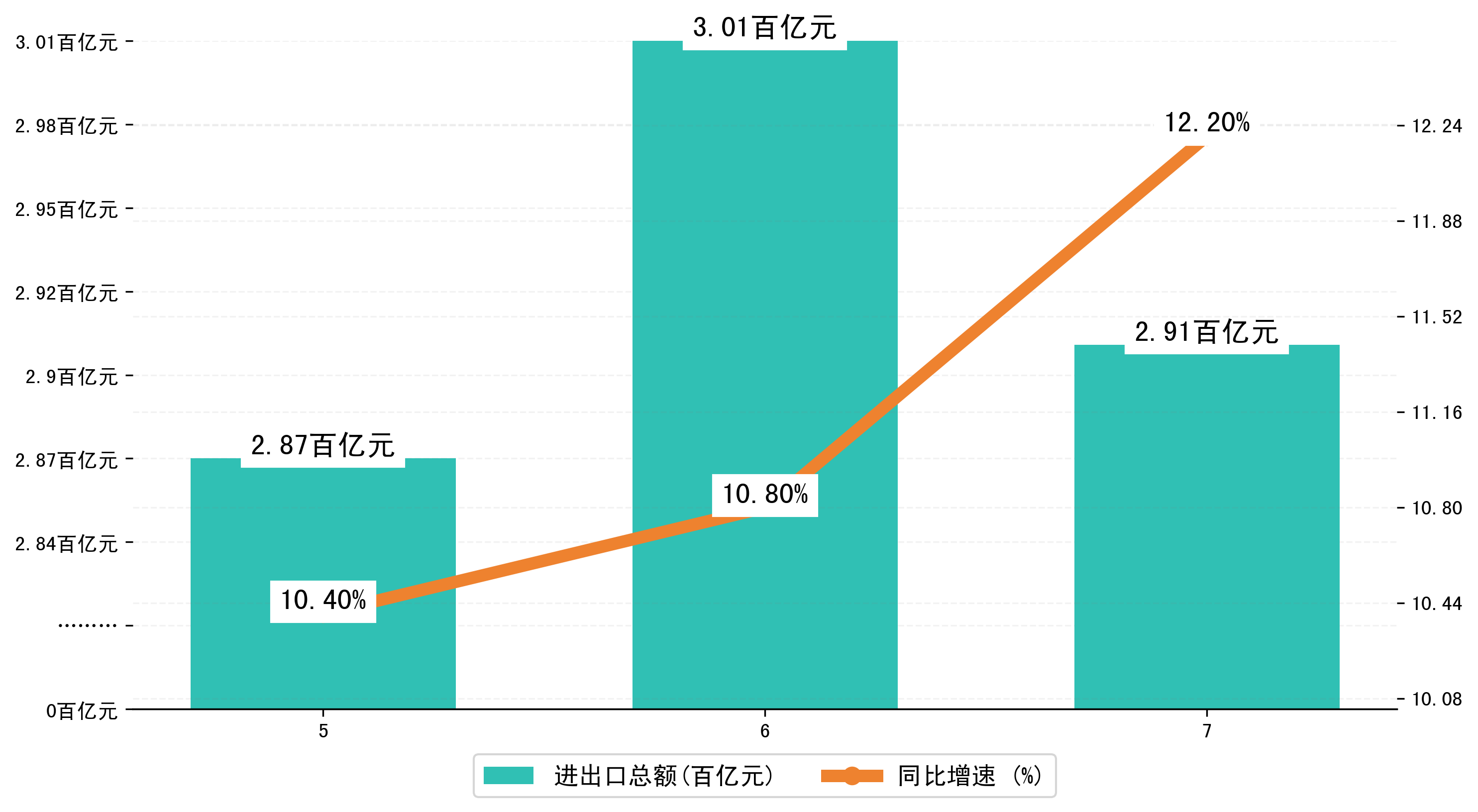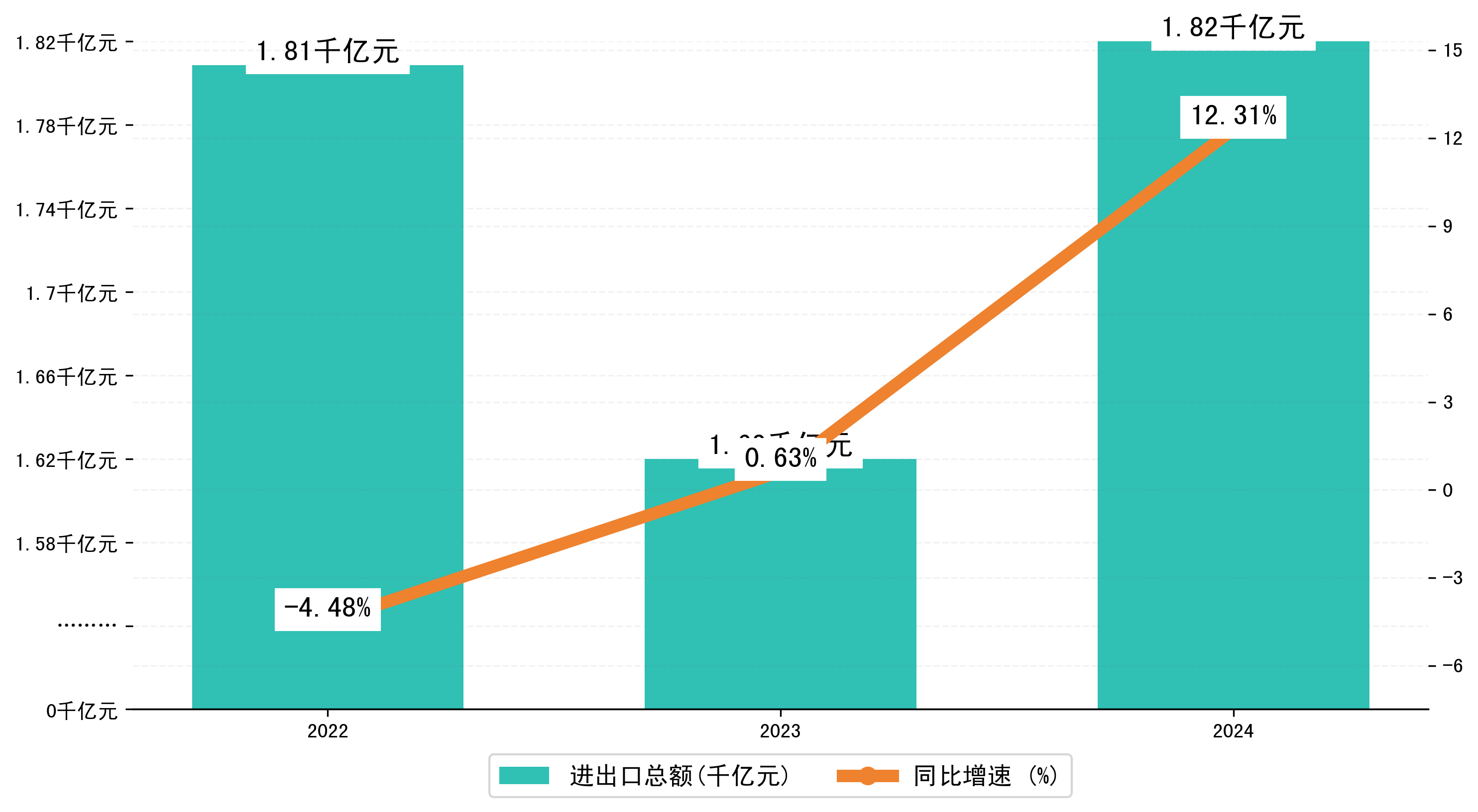 以人民币计,2024年1-7月珠海市进出口总额为1824,5892.3542万元,相比上年同期增加了199,9615.4857万元,同比增加了12.20%。