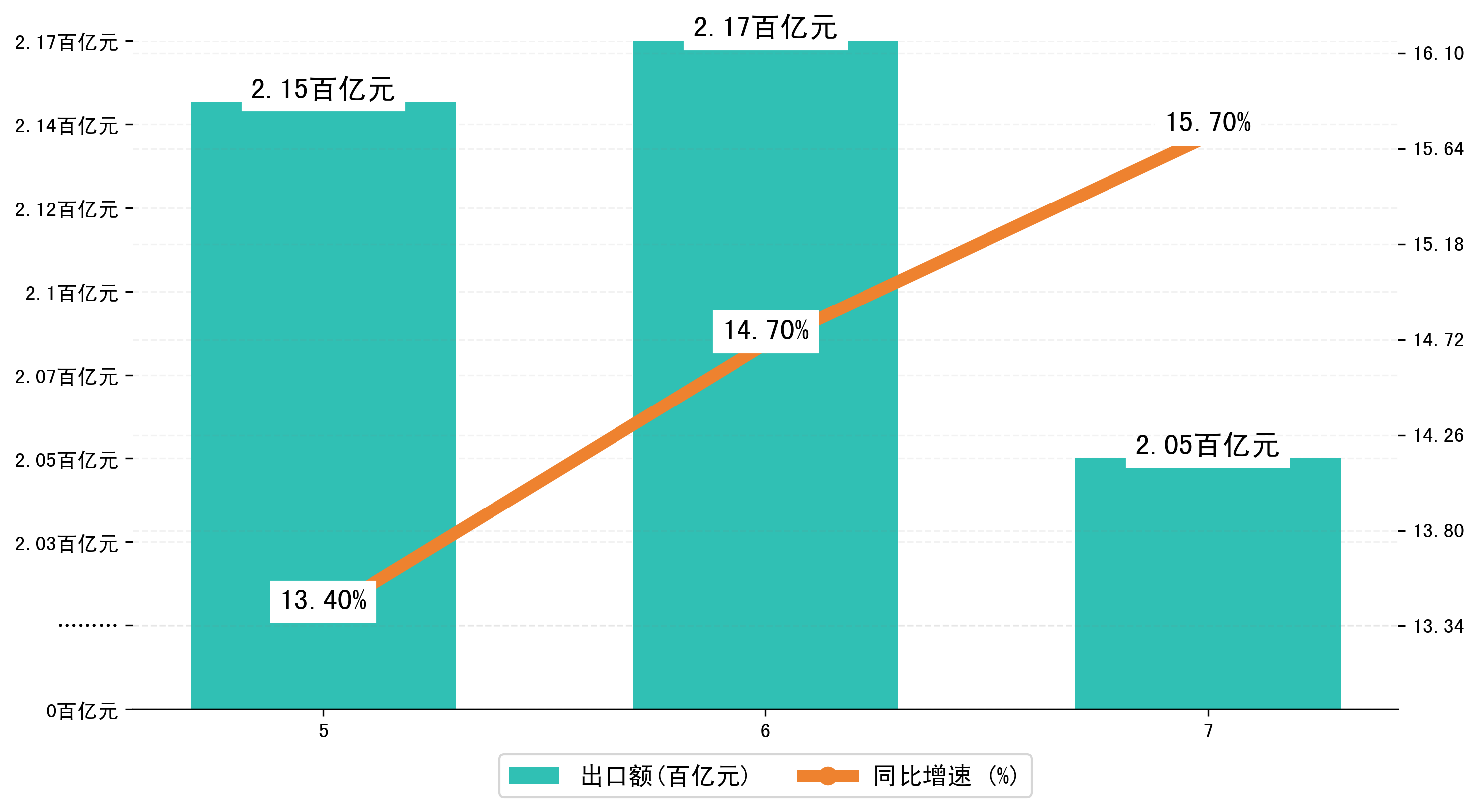 以人民币计,2024年1-7月珠海市出口额为1296,3737.6542万元,相比上年同期增加了177,9099.0881万元,同比增加了15.70%。
