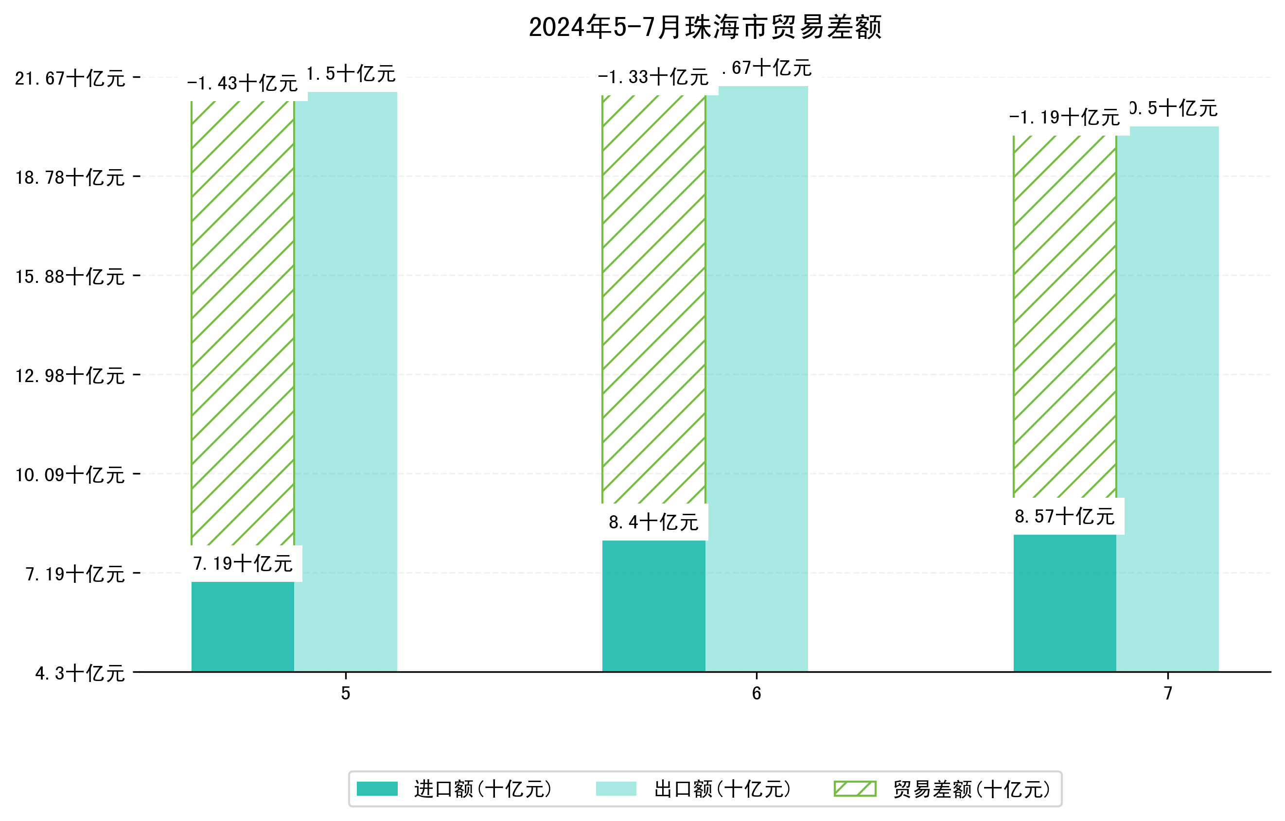 2024年7月珠海市进出口总额及进出口差额统计分析