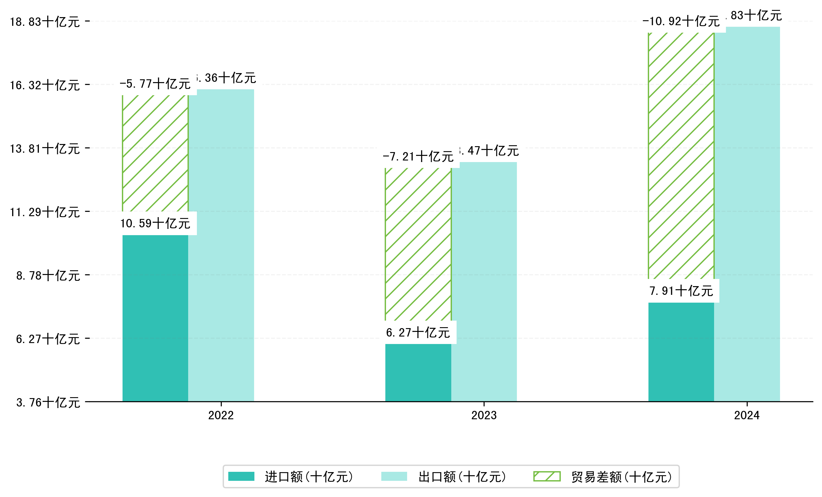 以美元计,2024年1月珠海市贸易差额为15,3789,9907万美元(贸易顺差),相比上月增加了2,2039,2500万美元;相比上年同期增加了5,0703,8050万美元,同比增加49.19%。