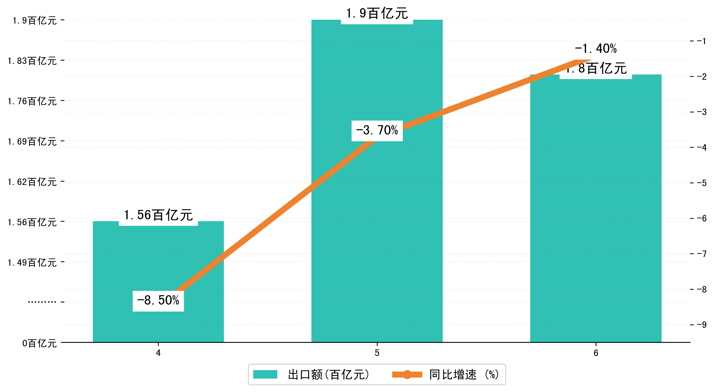 以人民币计,2023年6月珠海市出口额为180,4453.1066万元,相比上月减少了9,2501.9789万元;相比上年同期增加了19,5026.3376万元,同比减少了-1.40%。
