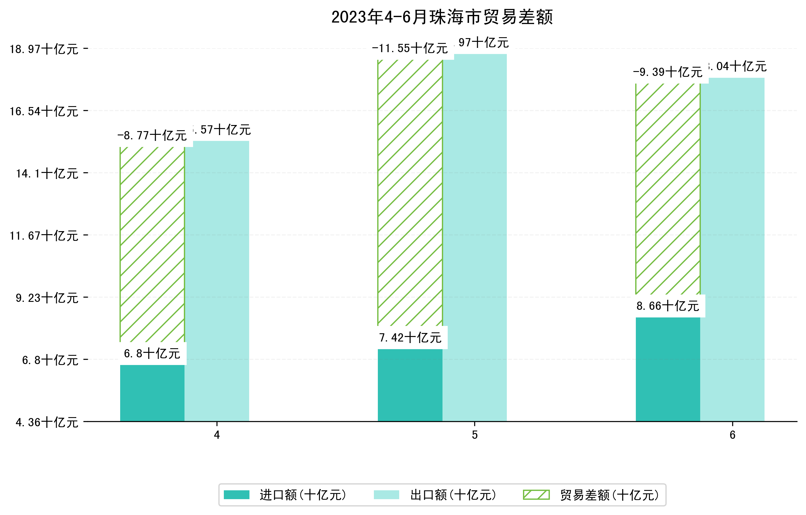以人民币计,2023年6月珠海市贸易差额为93,8740,6737万元(贸易顺差),相比上月减少了21,6032,9047万元,即3,3353,0599万美元;相比上年同期增加了33,7168,0812万元,同比增加56.05%。