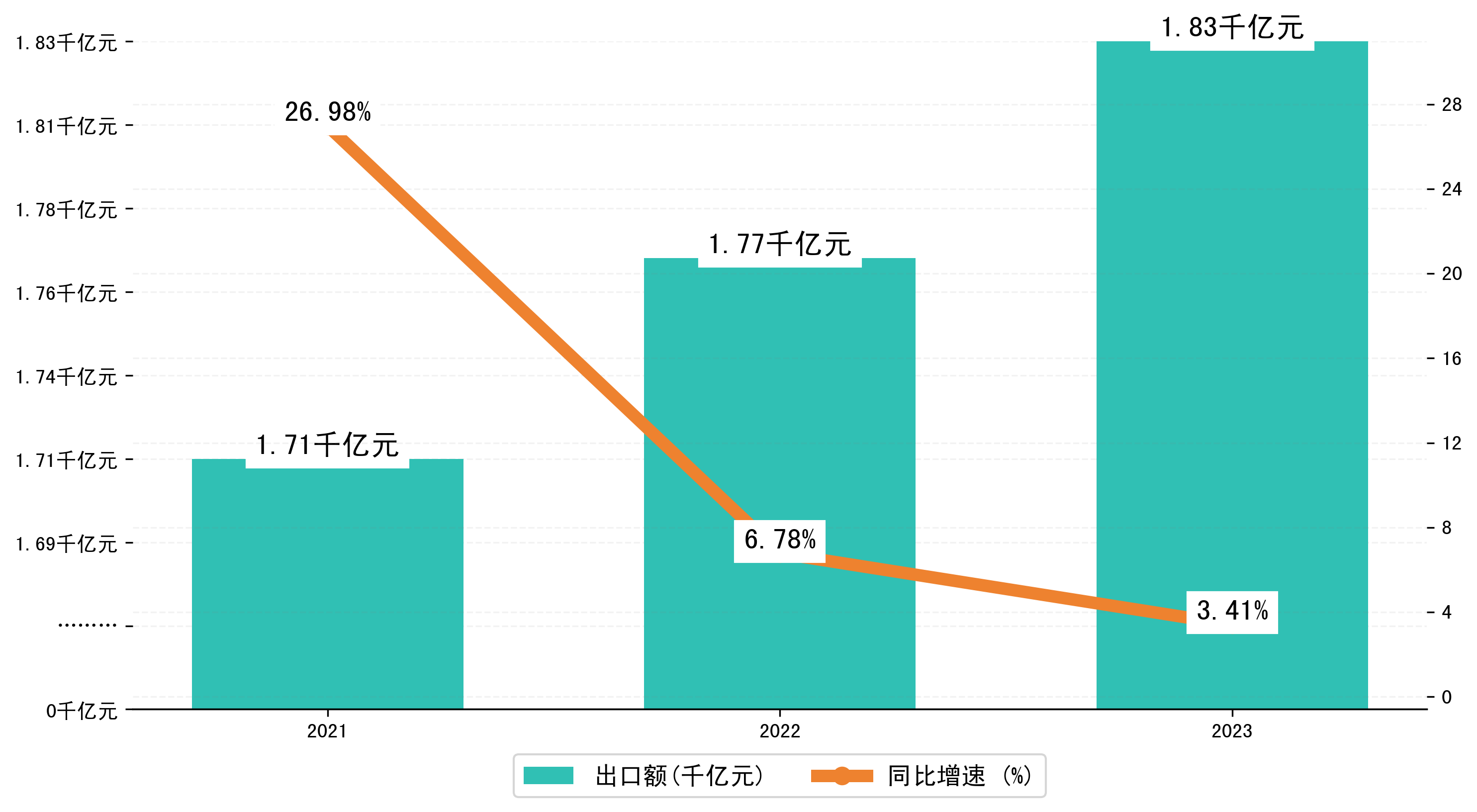 以人民币计,2023年1-11月珠海市出口额为1830,2083.5111万元,相比上年同期增加了60,3467.1554万元,同比增加了1.50%。