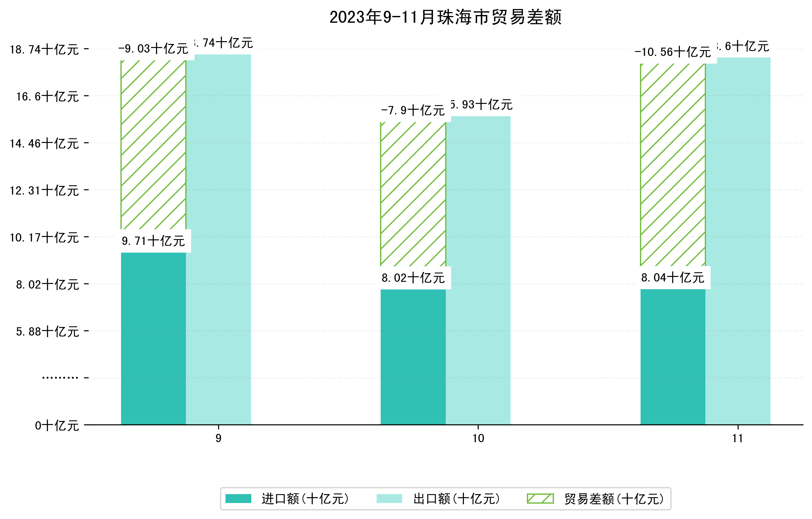 2023年11月珠海市进出口总额及进出口差额统计分析
