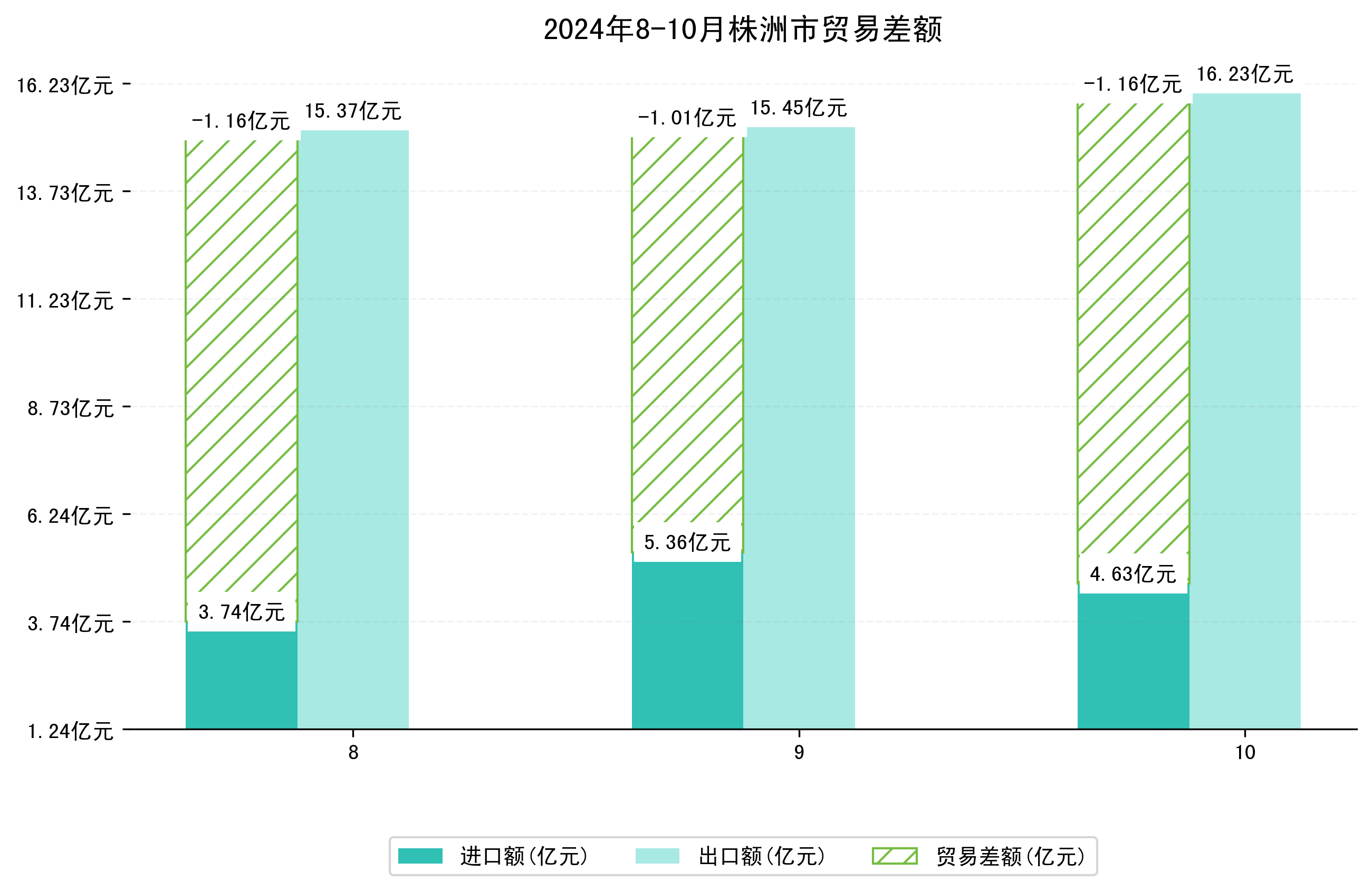 2024年10月株洲市进出口总额及进出口差额统计分析