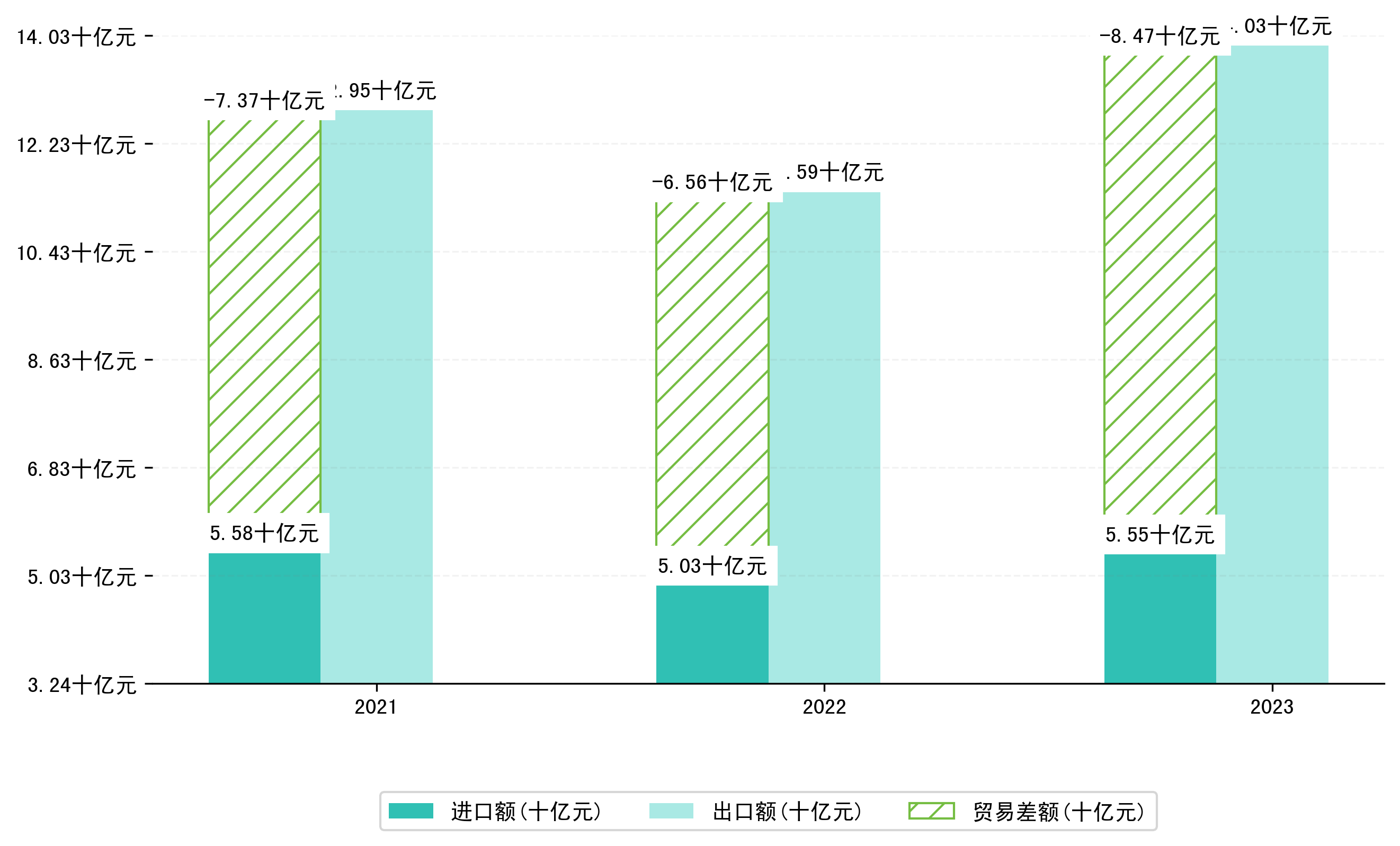 以美元计,2023年1-12月株洲市贸易差额为11,9882,8546万美元(贸易顺差),相比上年同期增加了2,1870,5751万美元,同比增加22.31%。