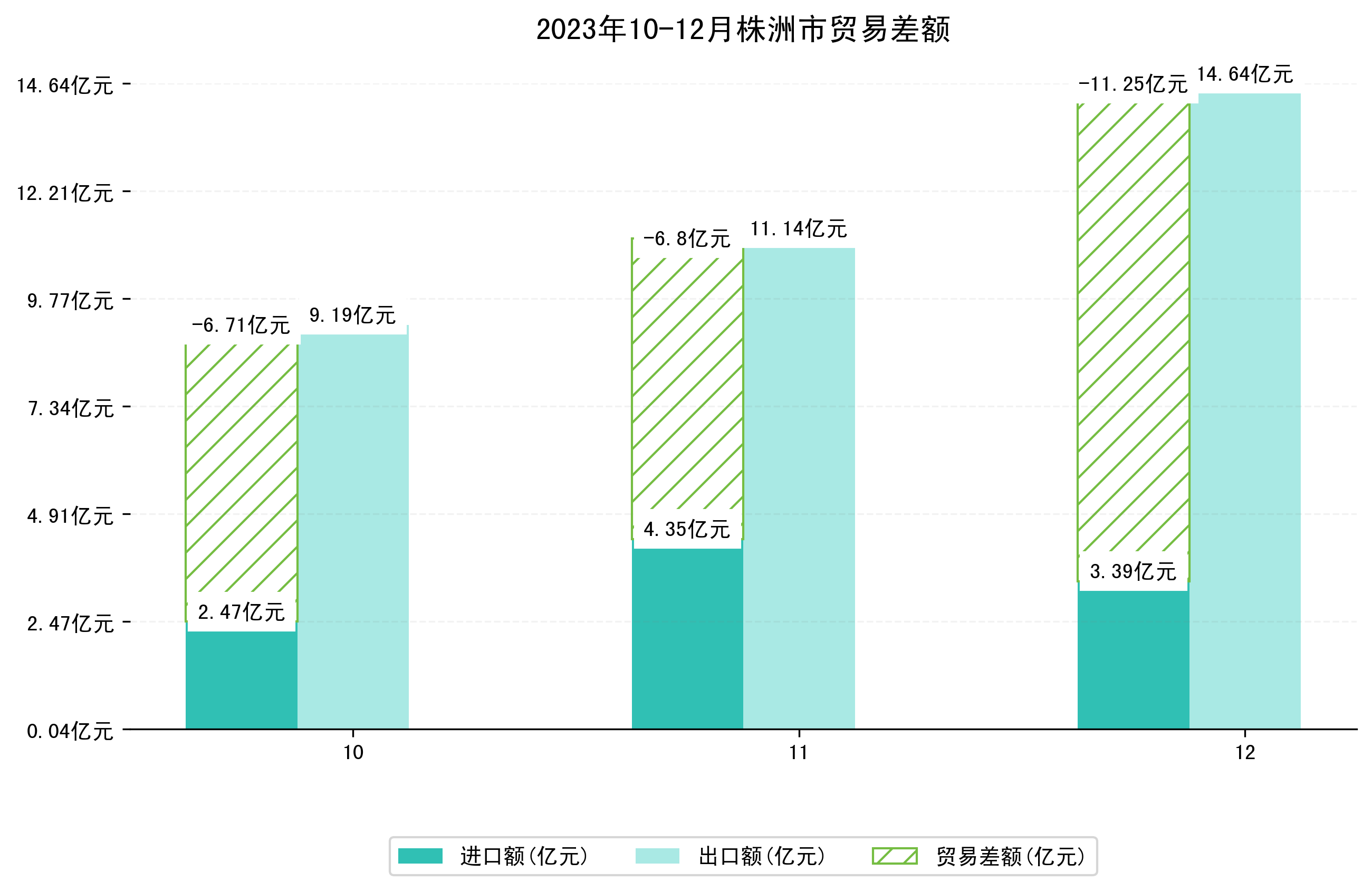 2023年12月株洲市进出口总额及进出口差额统计分析