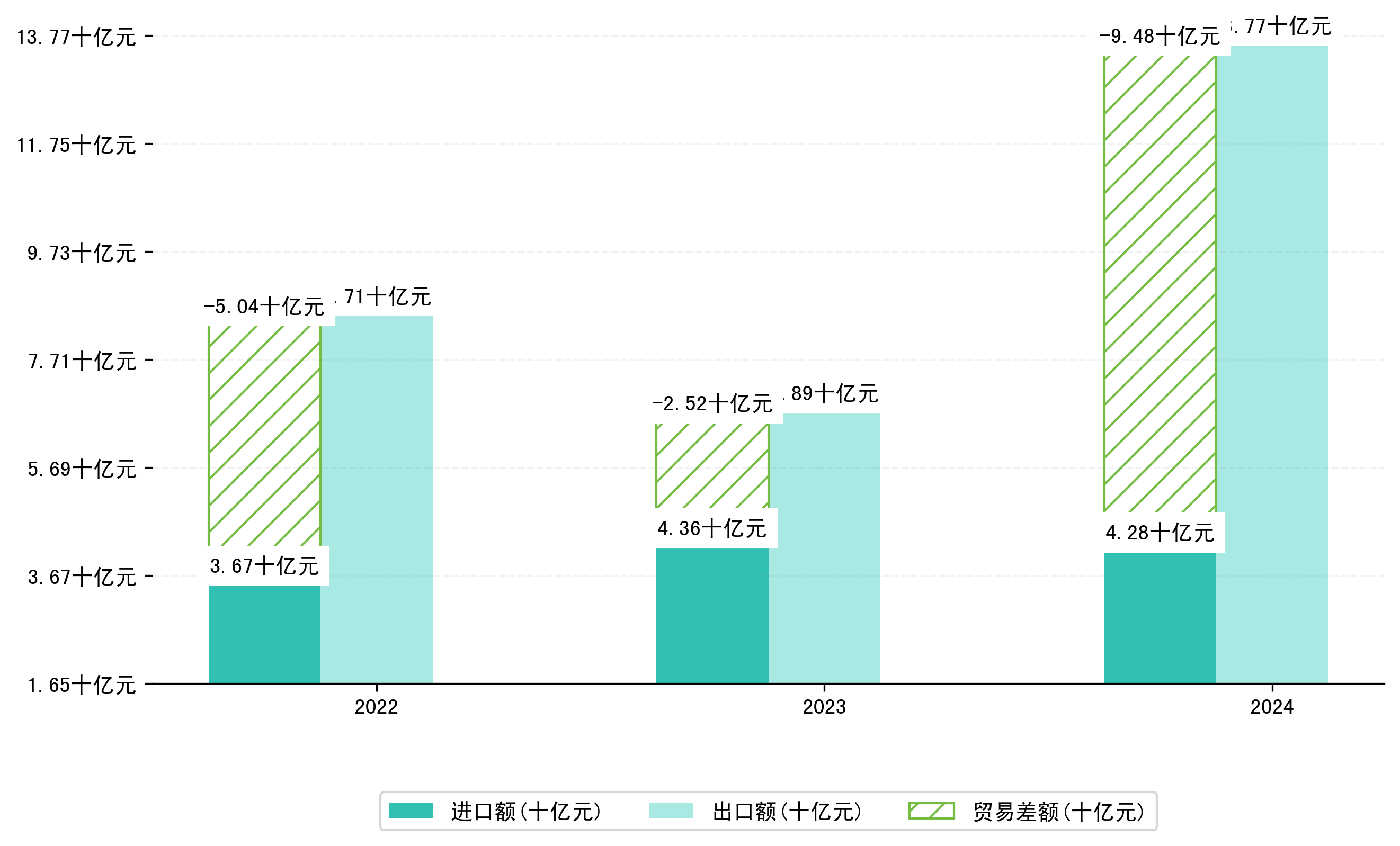 以美元计,2024年1-9月株洲市贸易差额为13,3390,2643万美元(贸易顺差),相比上年同期增加了9,7435,3153万美元,同比增加270.99%。