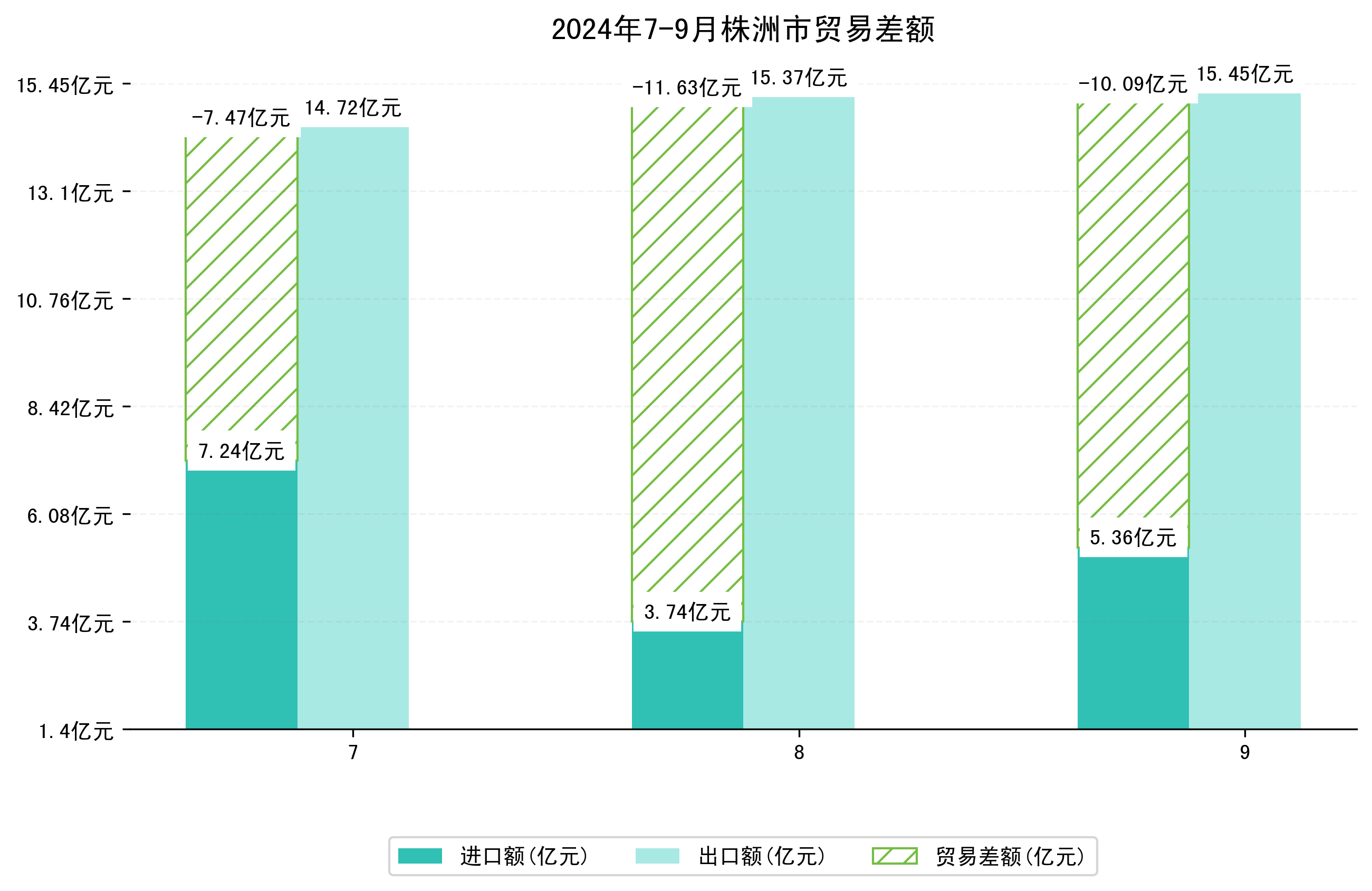 2024年9月株洲市进出口总额及进出口差额统计分析